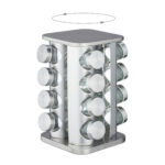 • Talpa: Stovas talpina 16 skaidrių stiklinių, leidžiančių lengvai matyti ir pasiekti visus jūsų mėgstamus prieskonius.
