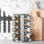 Šis prieskonių stovas yra puikus pasirinkimas tiek profesionaliems virėjams, tiek mėgėjams, norintiems savo virtuvėje turėti tvarkingą ir lengvai pasiekiamą prieskonių kolekciją. Papuoškite savo patiekalus ir suteikite jiems ypatingą skonį su šiuo elegantišku ir praktišku prieskonių stovu.