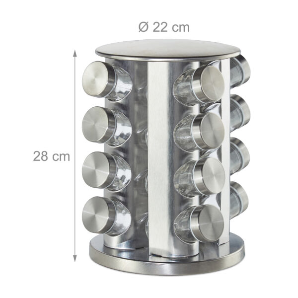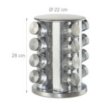 Prieskonių stovas su 16 skaidrių stiklinių 28x22cm, sidabrinės spalvos