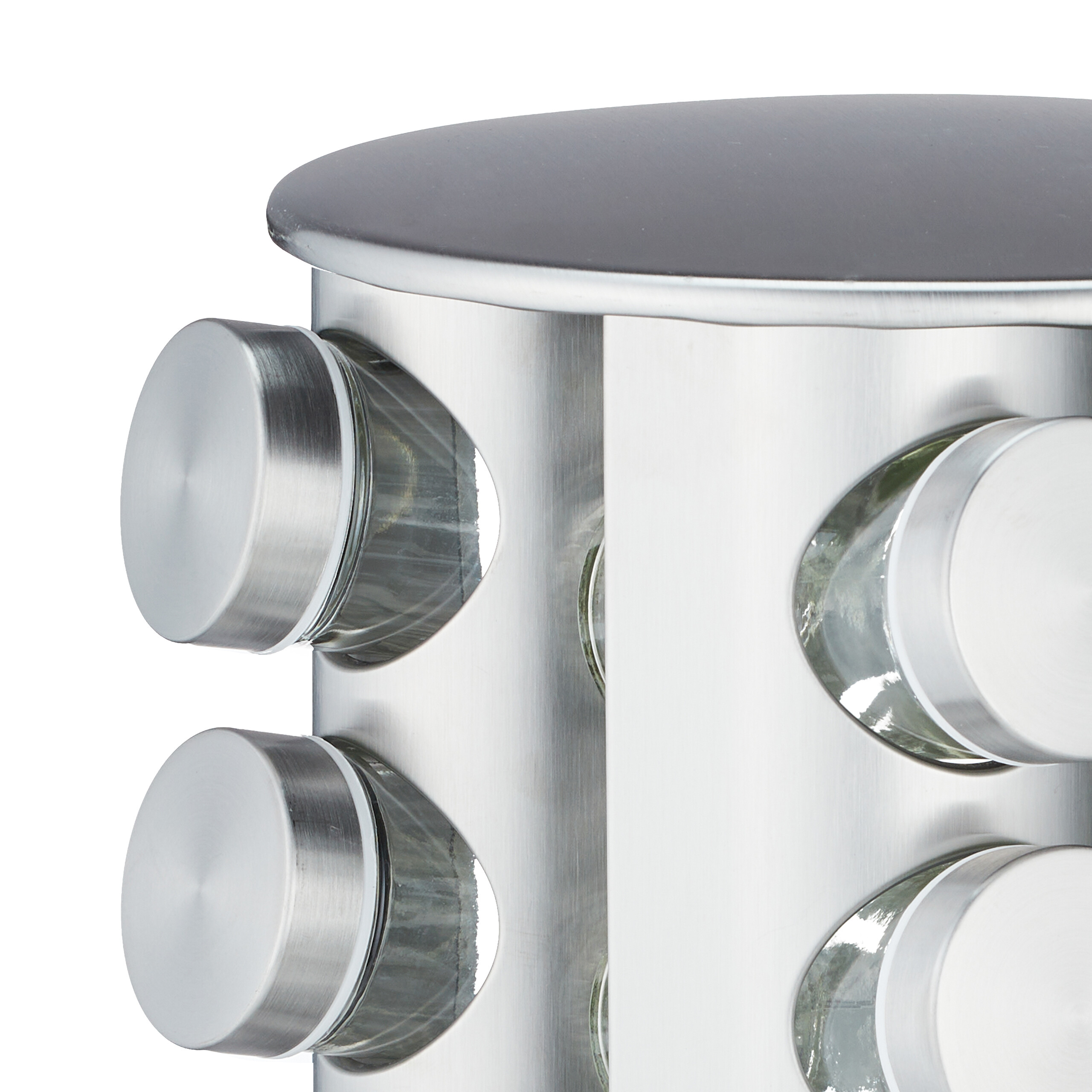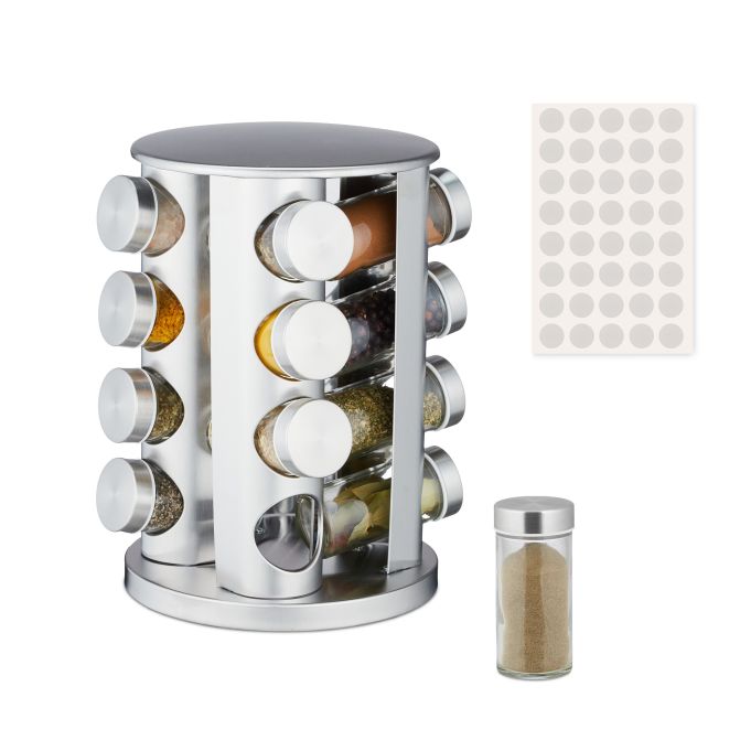 Prieskonių Stovas su 16 Skaidrių Stiklinių – Sidabrinės Spalvos