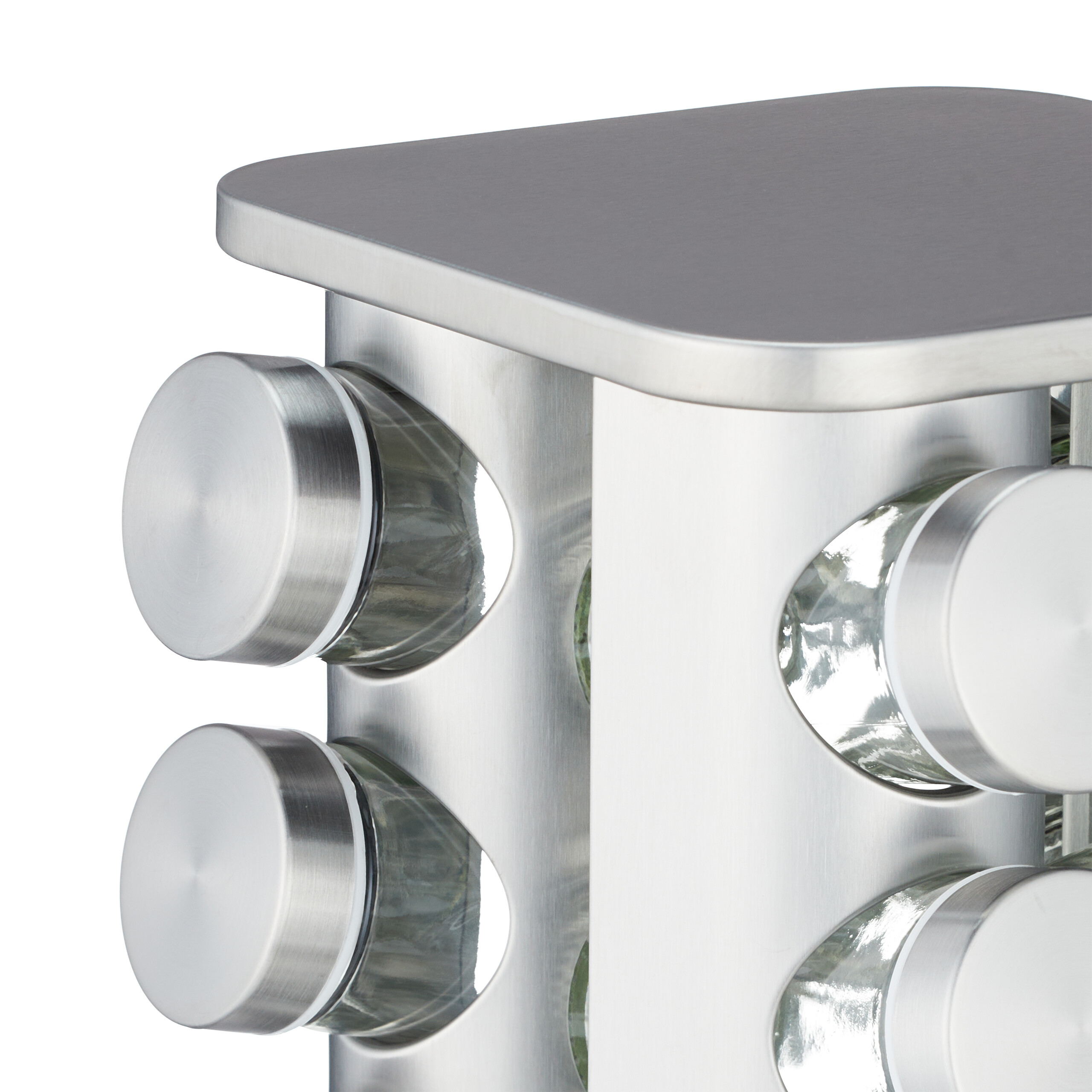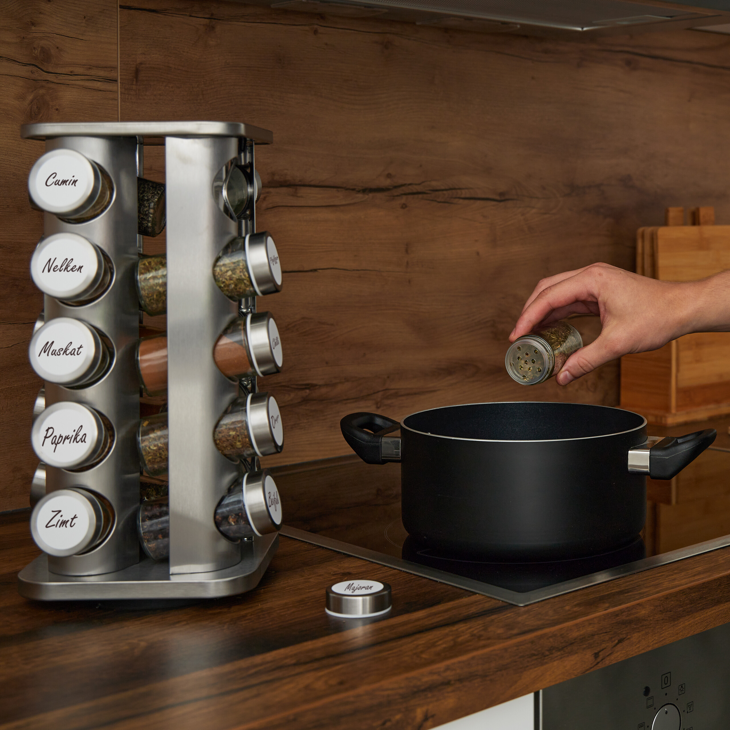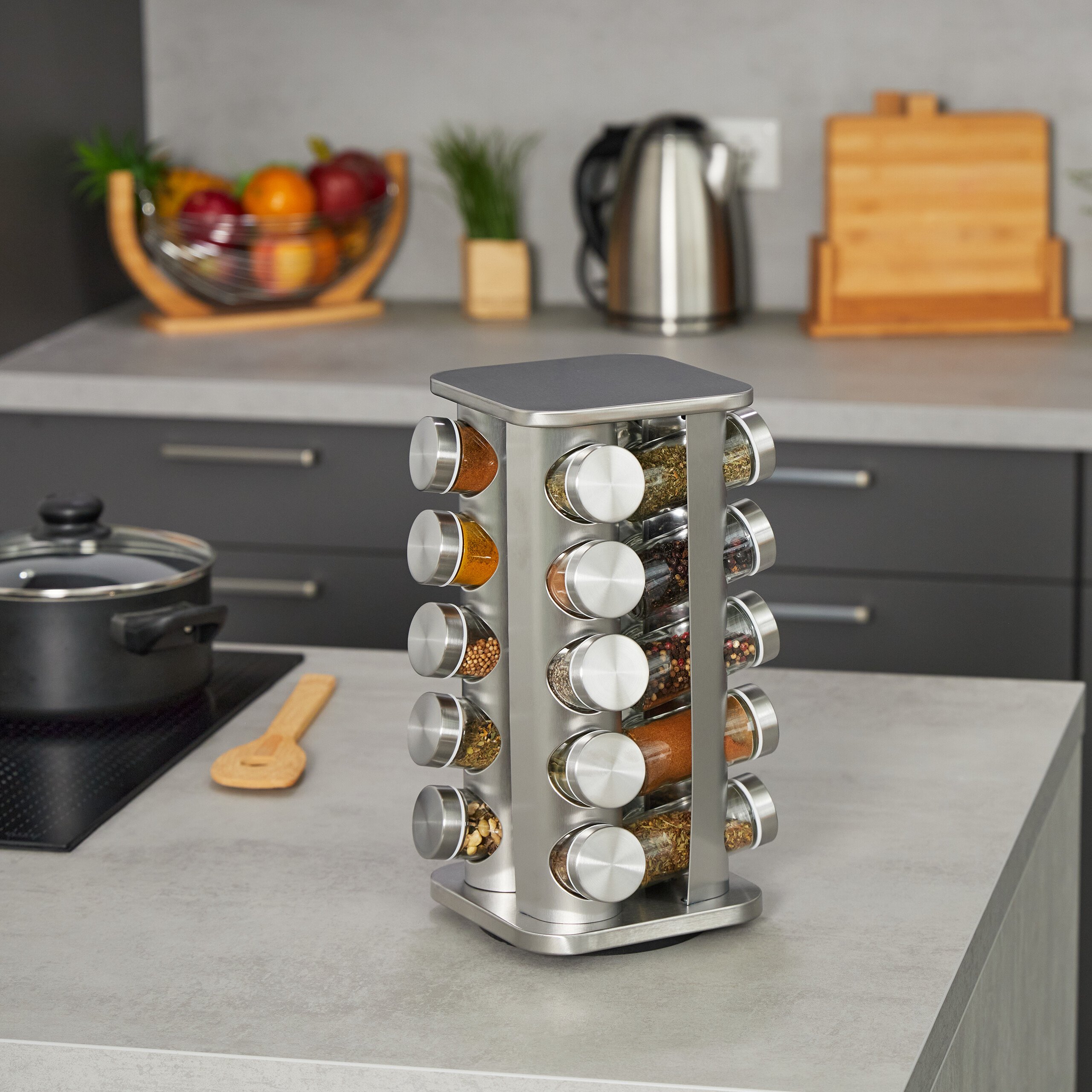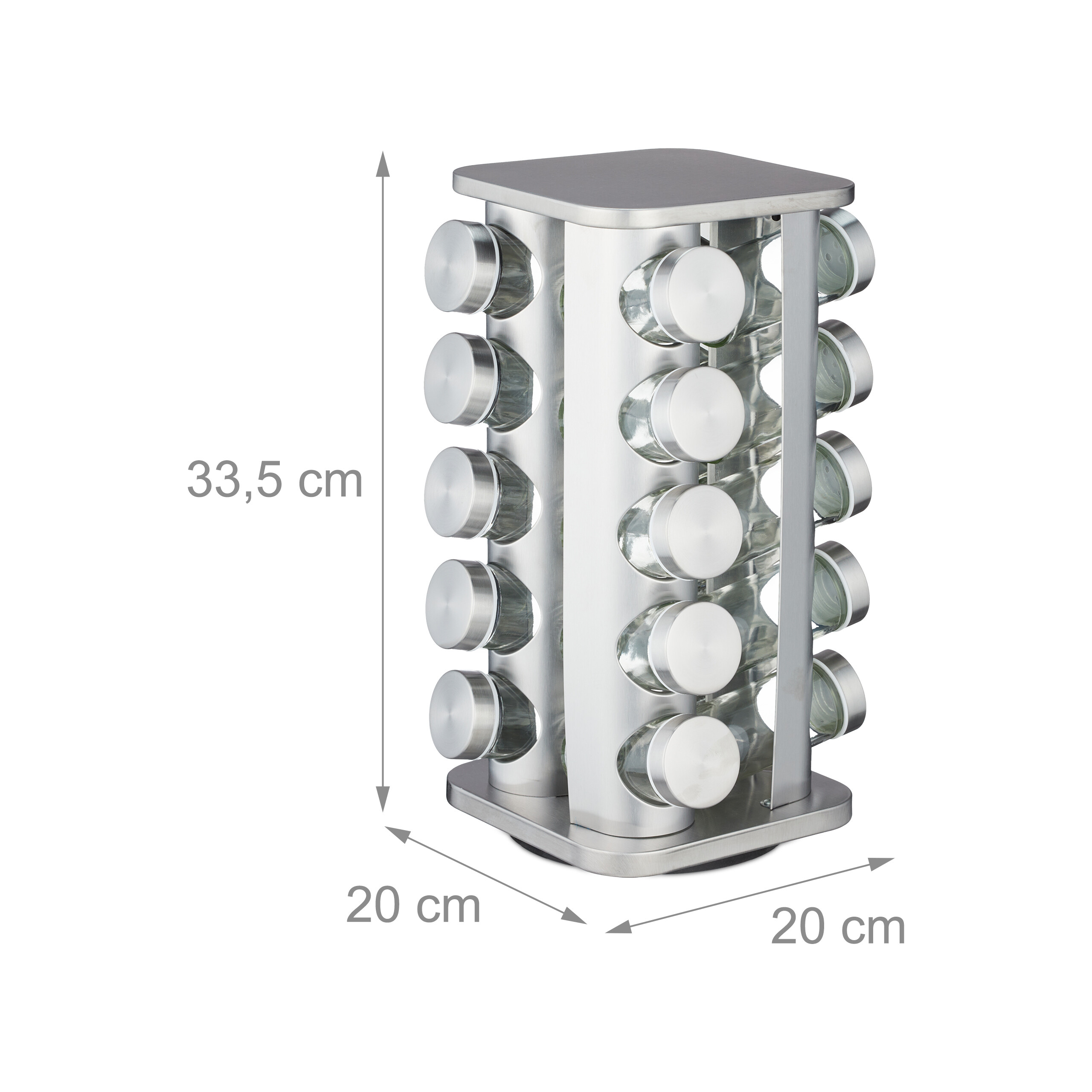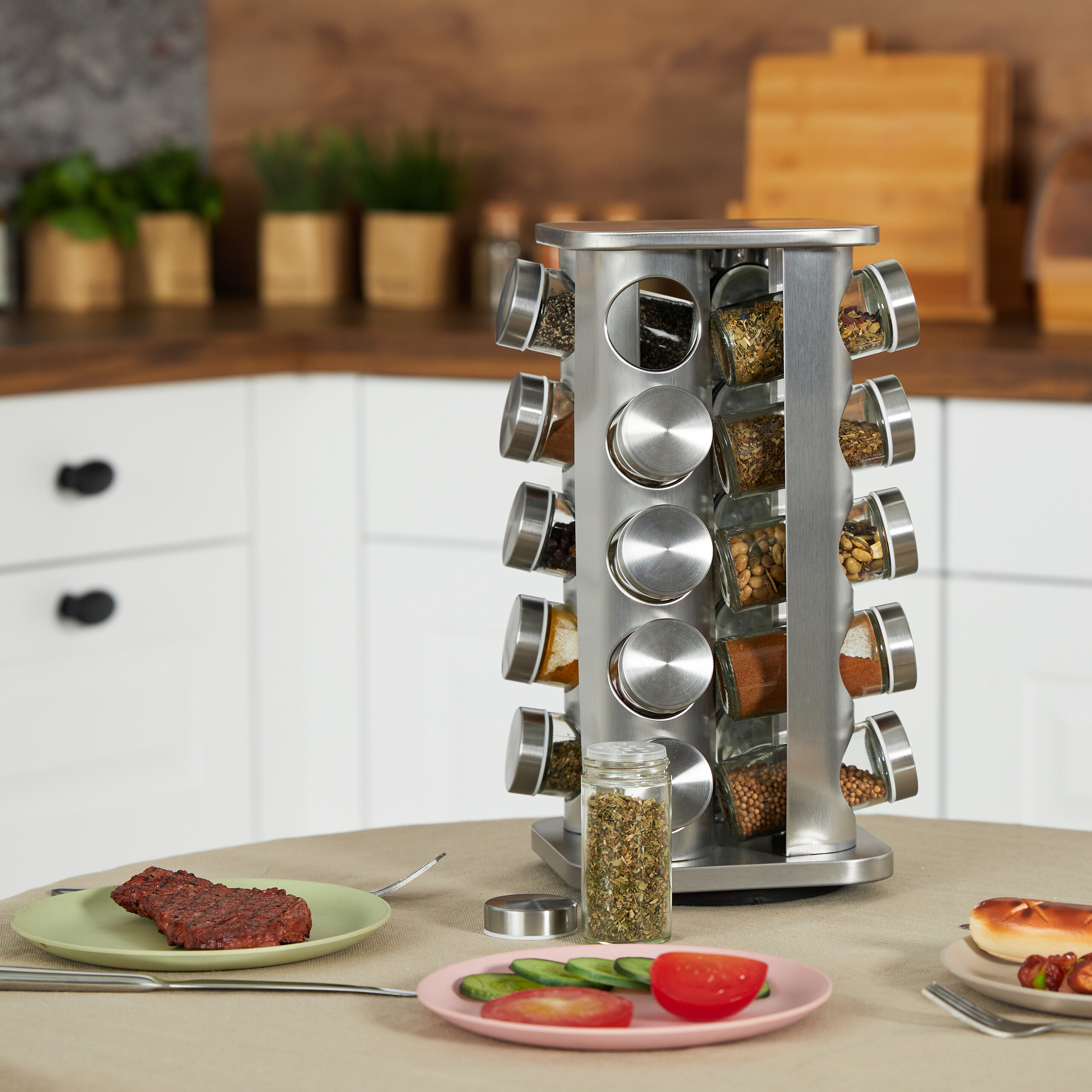 Prieskonių stovas su 20 skaidrių stiklinių – Sidabrinės spalvos elegancija jūsų virtuvei
