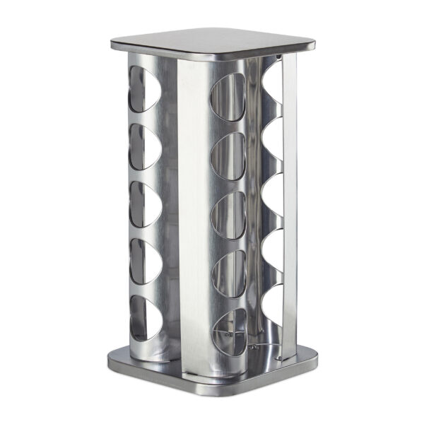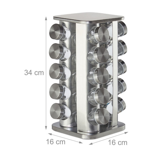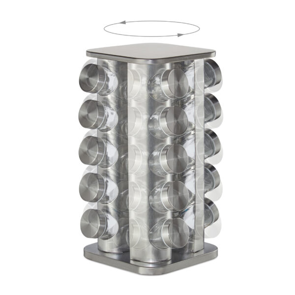 Įneškite naujų spalvų ir skonio į savo kasdienę virtuvės rutiną su šiuo išskirtiniu prieskonių stovu. Sidabrinės spalvos dizainas suteikia modernumo ir elegancijos, o 20 skaidrių stiklinių indelių leidžia lengvai matyti ir pasirinkti norimus prieskonius. Šis stovas ne tik puikiai atrodo, bet ir yra itin praktiškas, nes gali būti pasukamas 360 laipsnių kampu, užtikrinant, kad visi prieskoniai būtų lengvai pasiekiami.