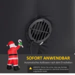 Sukurkite išskirtinę šventinę Kalėdų atmosferą su šiuo 2,5 m aukščio pripučiamu Kalėdų Seneliu iš HOMCOM. Pripučiama Kalėdų figūrėlė pagaminta iš tvirto, oro sąlygoms atsparaus poliesterio ir turi baltą LED apšvietimą. Komplekte esančio pūstuvo dėka papuošimą galima sukonfigūruoti per kelias minutes. Dekoraciją galima prijungti prie bet kurio standartinio elektros lizdo, todėl surinkimas yra greitas.