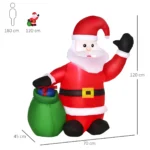 - ✔ 120 cm ūgio pripučiamas Kalėdų Senelis, kuris laiko pilną maišą dovanų, yra šventinis draugų ir šeimos akį traukiantis žmogus
