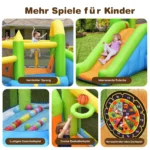 Pripučiamas batutas 477x241x208 cm – puikus pasirinkimas vaikų laisvalaikiui tiek namuose, tiek lauke. Šis batutas su įvairiomis pramogų zonomis, įskaitant vandensvydžio baseiną, čiuožyklą ir krepšinio žaidimą, užtikrina aktyvų ir saugų žaidimą vaikams nuo 3 iki 10 metų.