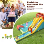 Pripučiamas batutas 622x335x225 cm, įvairių spalvų – puikus pasirinkimas vaikų laisvalaikiui tiek vasarą, tiek žiemą. Šis pripučiamas atšokantis namas su papildoma vandens parko funkcija suteikia galimybę žaisti lauke su čiuožyklomis, baseinu, vandens pistoletu ir kitomis pramogomis.