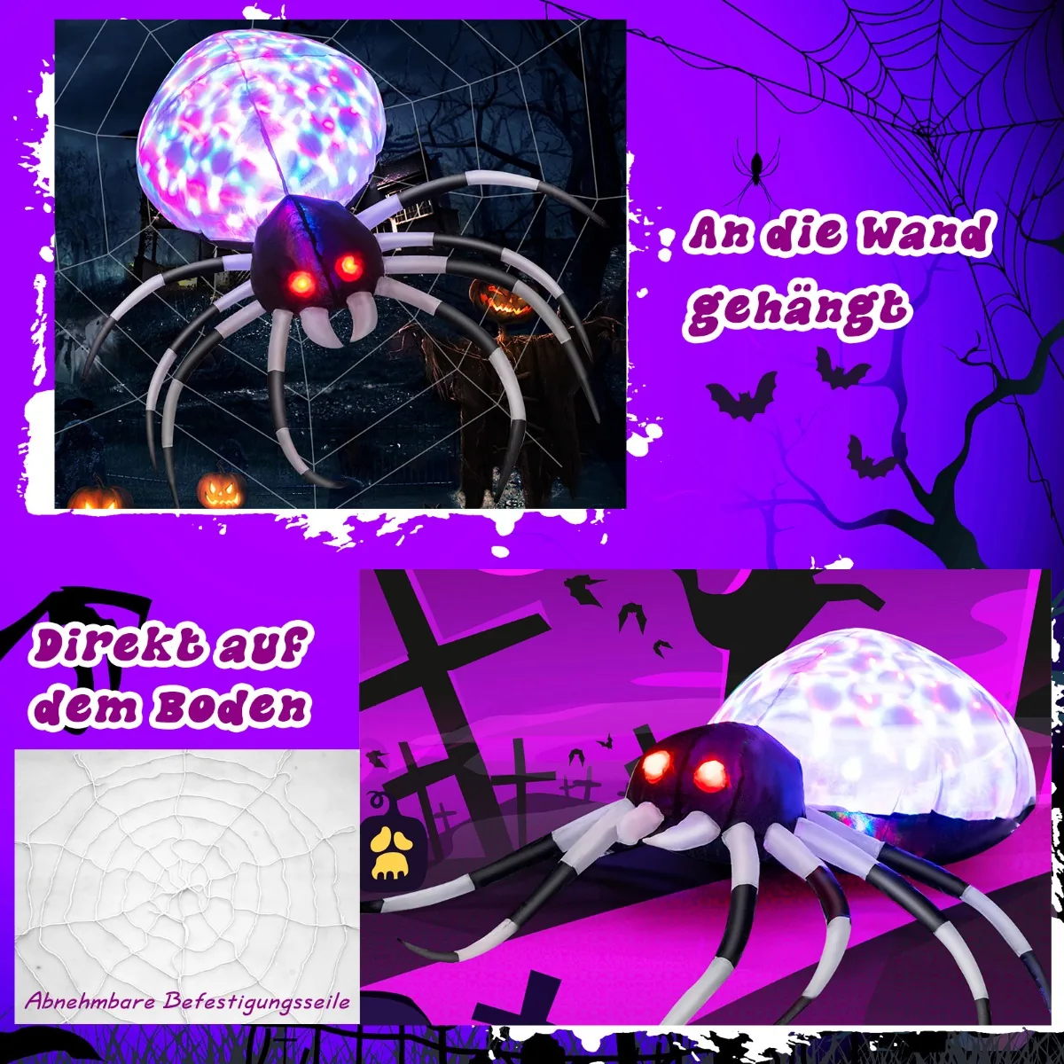 Pripučiamas LED Helovino voras 93x105x34 cm – efektyvi dekoracija jūsų Helovino vakarėliui ar kiemo puošybai. Šis voras skleidžia įvairiaspalves šviesas ir turi realistišką dizainą, kuris padės sukurti baisią atmosferą.