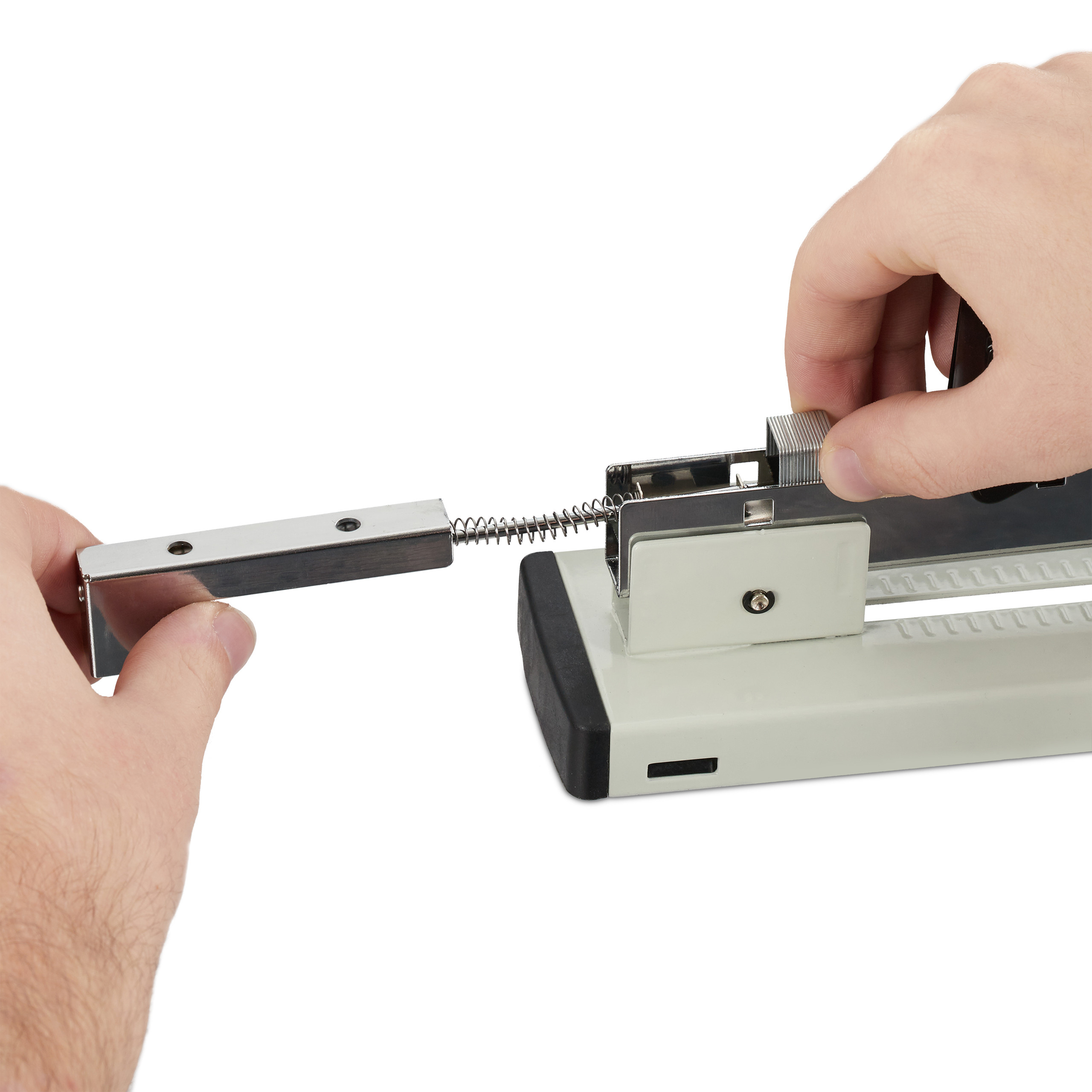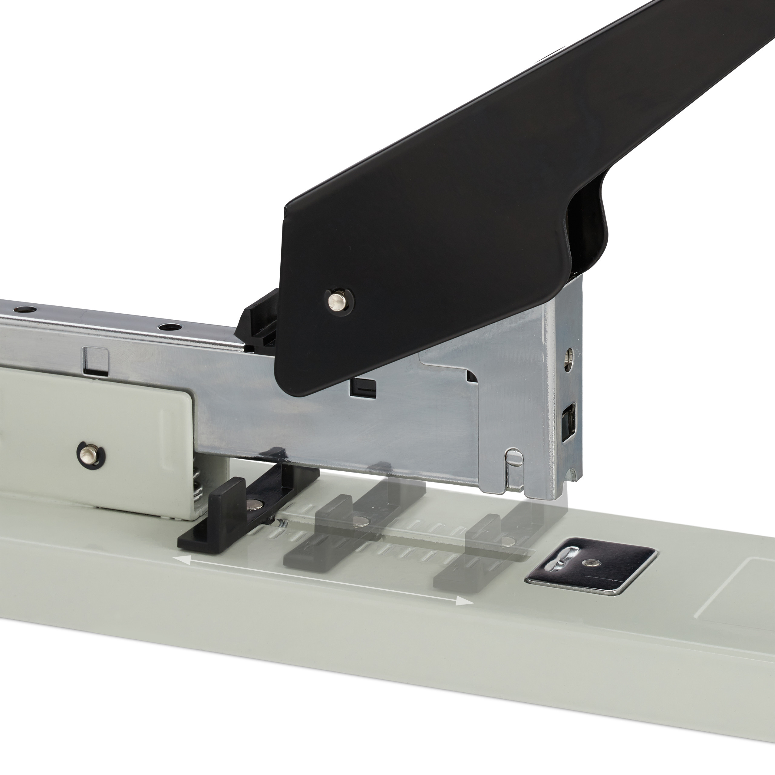 - Reguliuojamas popieriaus kreiptuvas: Palaipsniui reguliuojamas kreiptuvas leidžia nustatyti segtuko atstumą iki lapo krašto pagal jūsų poreikius.