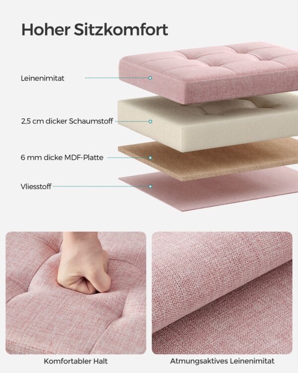 Šis elegantiškas ir funkcionalus pufas yra puikus pasirinkimas tiems, kurie vertina stilių ir praktiškumą. Jo pastelinė rožinė spalva suteiks jūsų interjerui subtilaus žavesio, o kokybiškos medžiagos užtikrins ilgaamžiškumą ir patogumą.