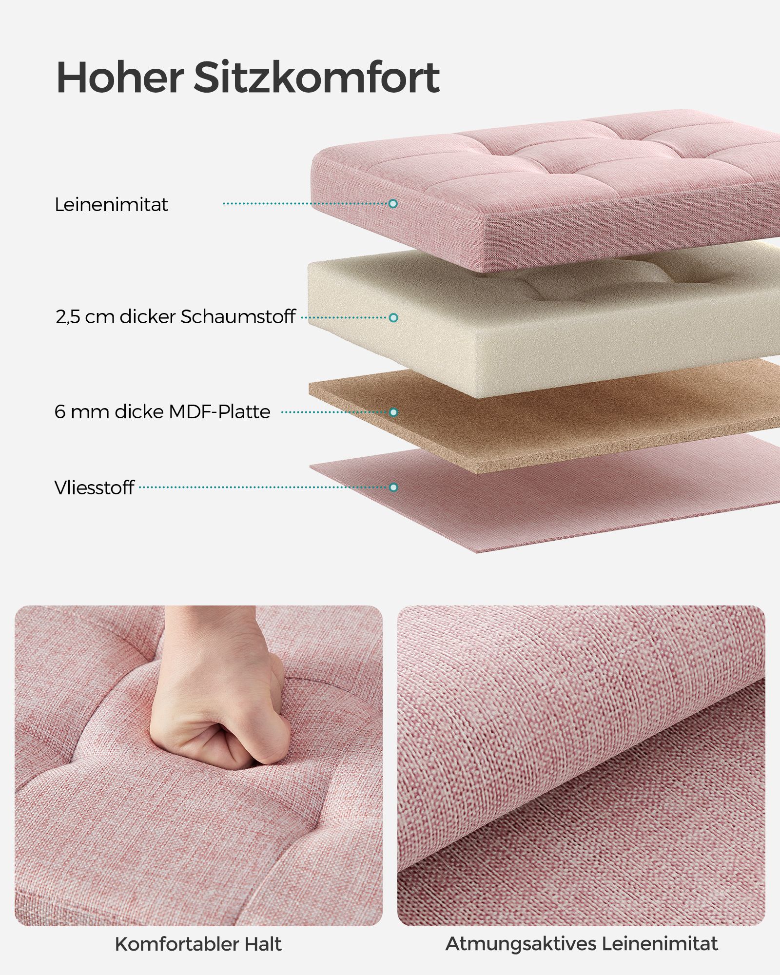 Medžiaga: Lino imitacija, MDF (vidutinio tankio medienos plaušų plokštė), putplastis