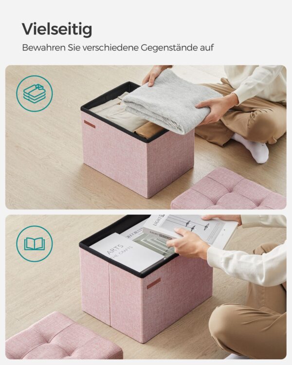 Šis pufas ne tik suteiks papildomą sėdimą vietą, bet ir padės tvarkingai laikyti įvairius daiktus, nes jo talpa siekia net 32 litrus. Tai puikus sprendimas tiek mažoms, tiek didelėms erdvėms, kuriose norisi išlaikyti tvarką ir stilių.