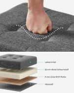 Šis pufas ne tik suteikia papildomą sėdimą vietą, bet ir gali būti naudojamas kaip stilinga daiktadėžė. Jo talpa leidžia patogiai laikyti įvairius daiktus, o tvirta konstrukcija užtikrina, kad jis atlaikys net ir didesnes apkrovas. Tai puikus sprendimas tiems, kurie vertina tiek estetiką, tiek funkcionalumą.