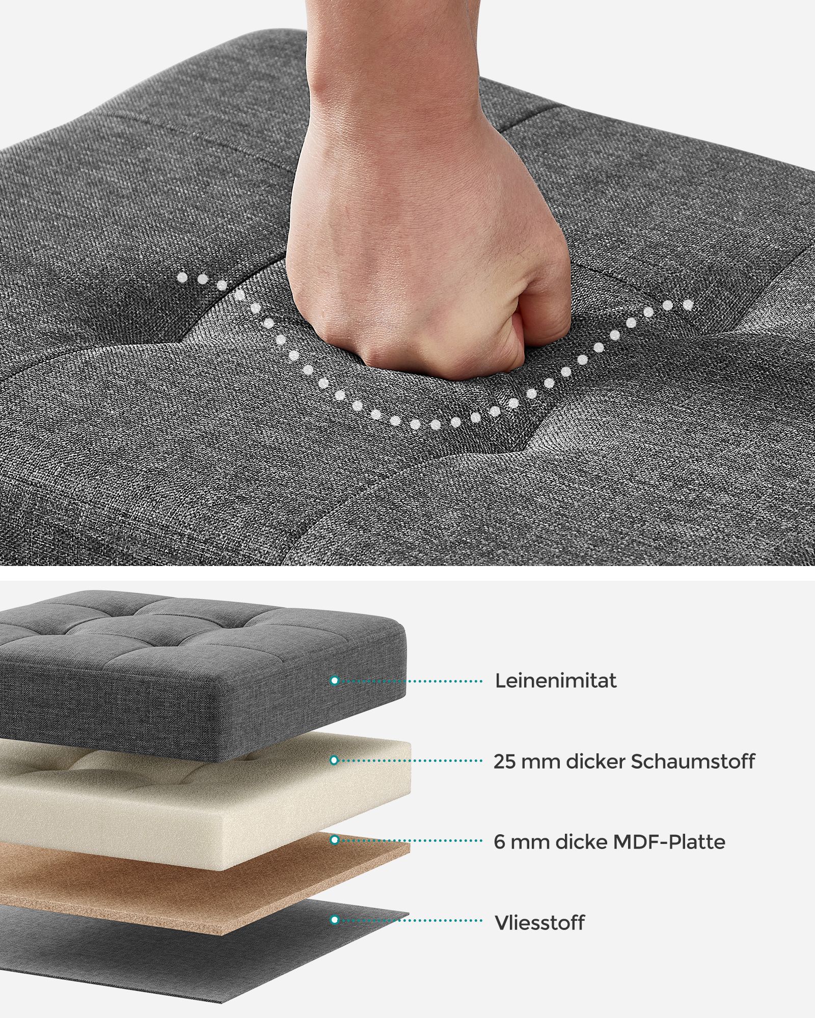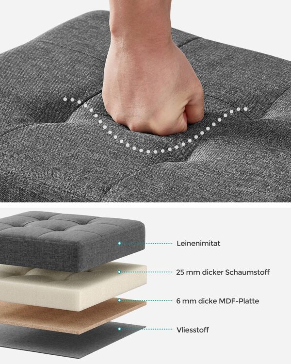 Medžiaga: Lino imitacija, putplastis, MDF (vidutinio tankio medienos plaušų plokštė)