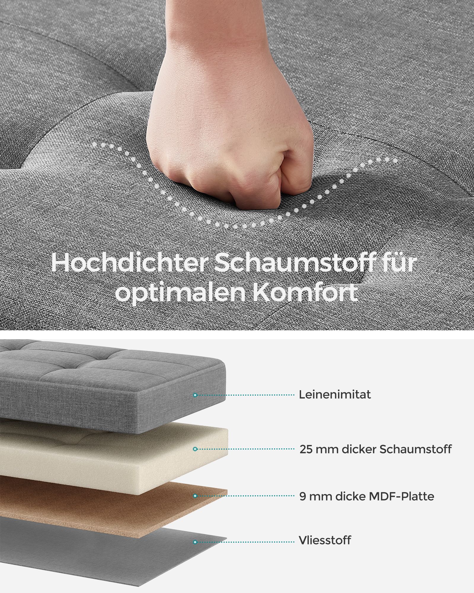 - Medžiaga: Lino imitacija, putplastis, MDF (vidutinio tankio medienos plaušų plokštė)