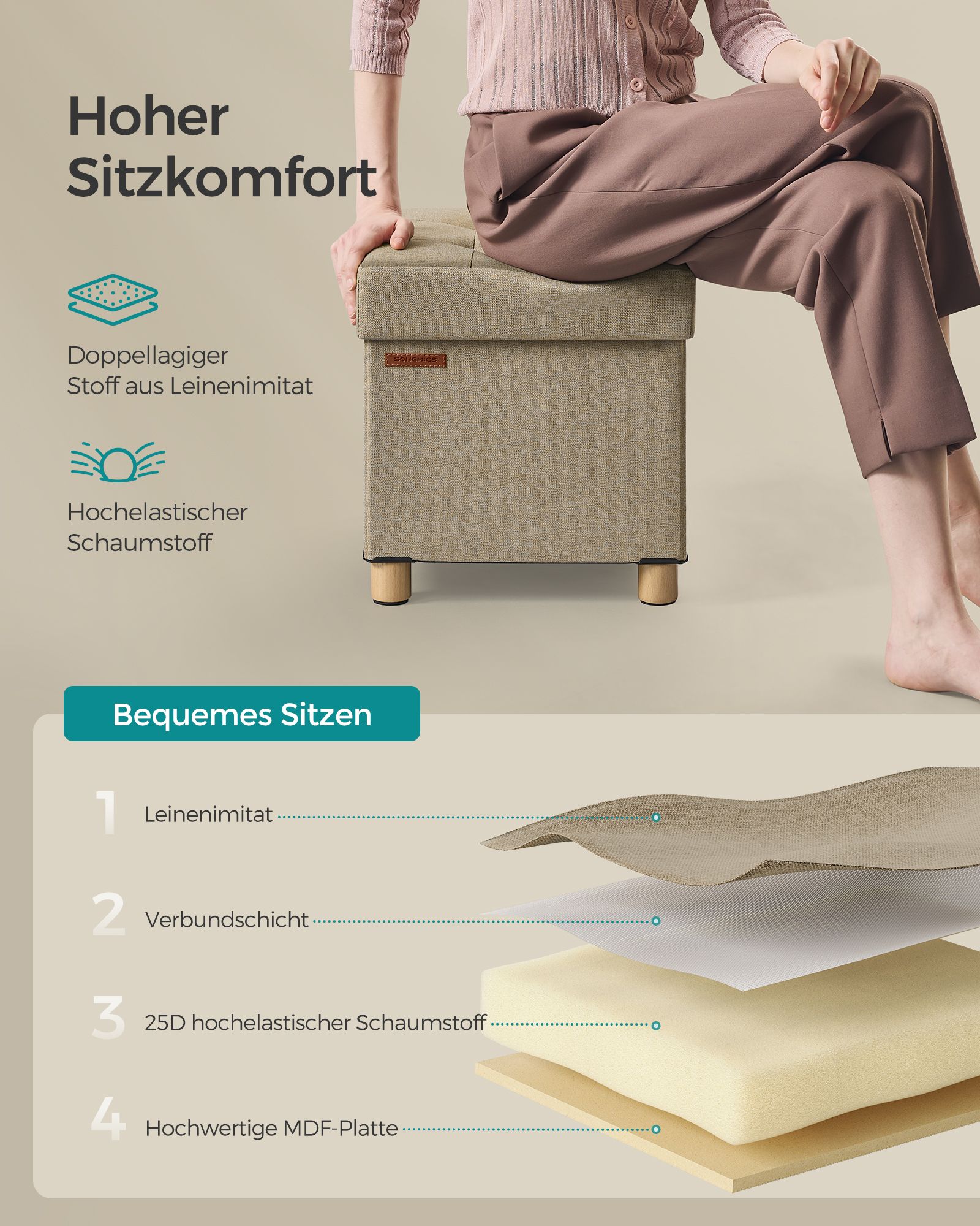 Medžiaga: MDF (vidutinio tankio medienos plaušų plokštė), lino imitacija, 25D didelio elastingumo putos