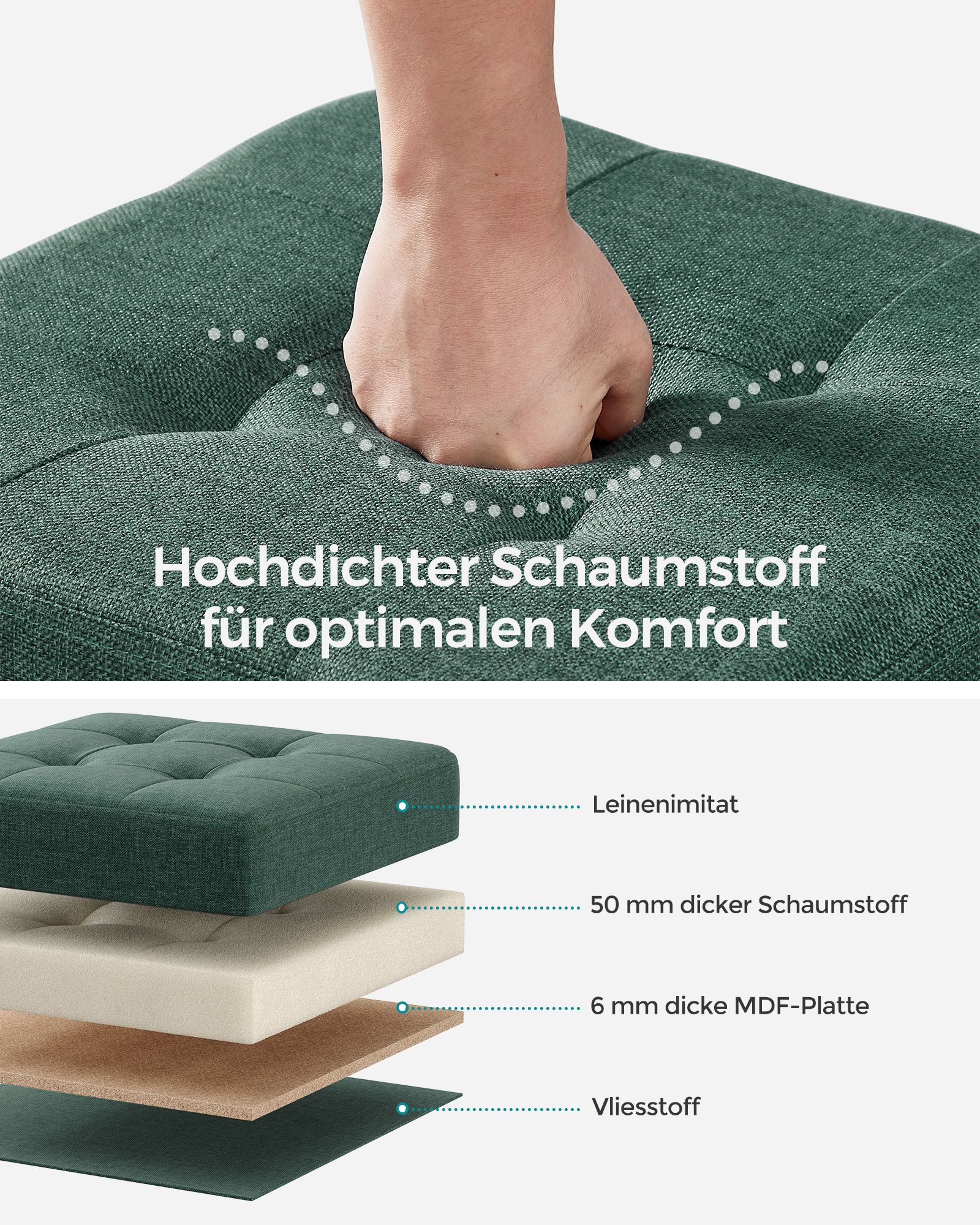 Medžiaga: Lino imitacija, putplastis, MDF (vidutinio tankio medienos plaušų plokštė)
