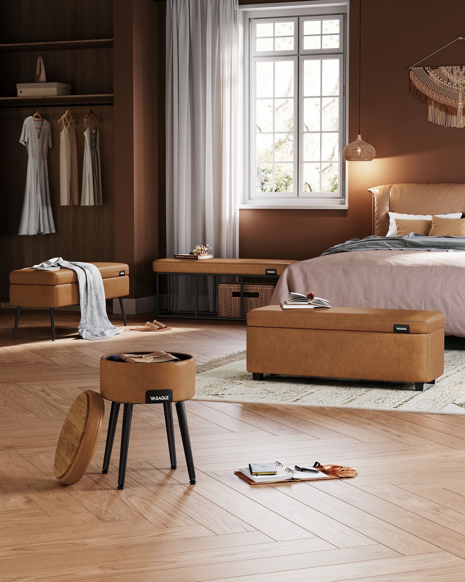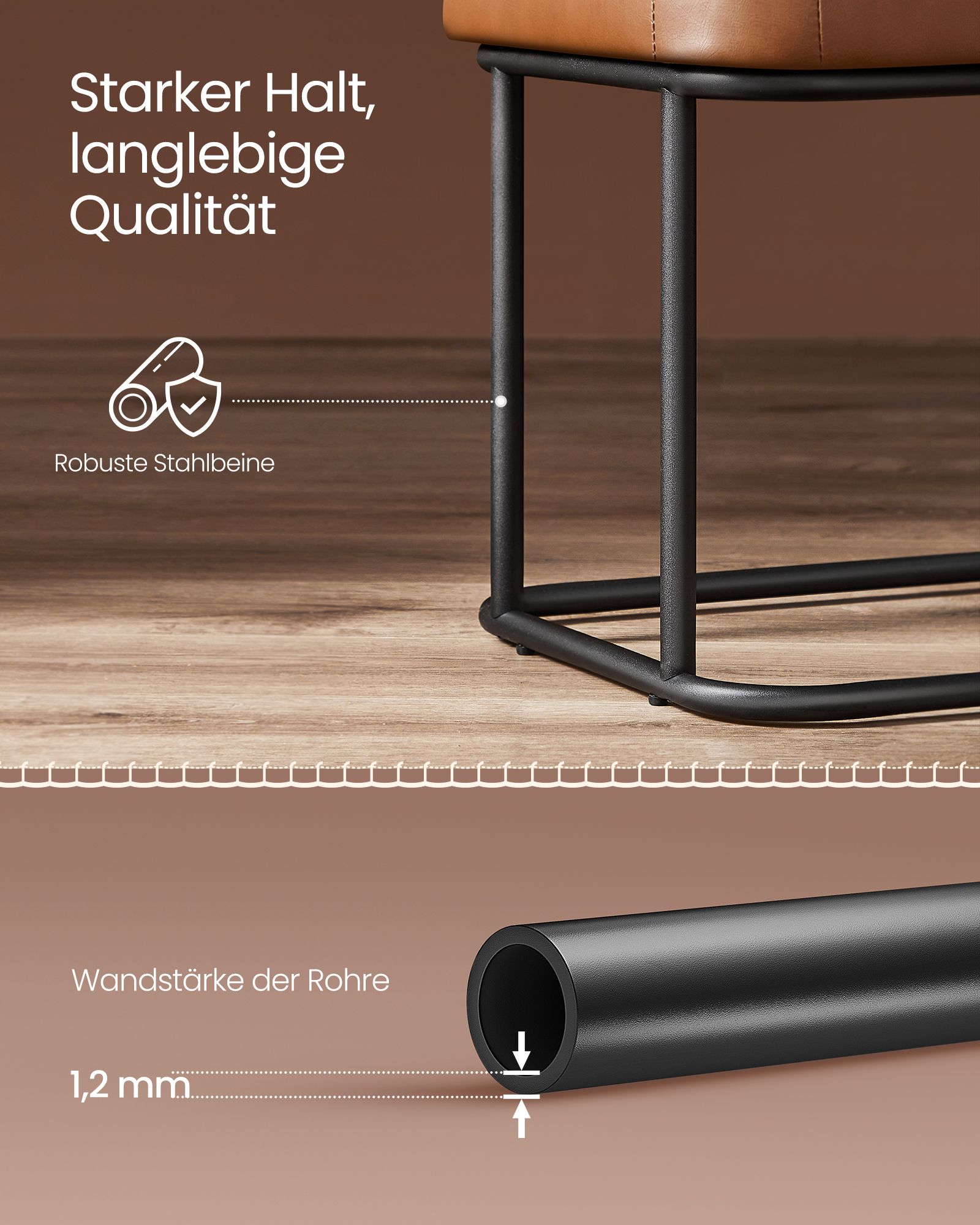 - Spalva: Karamelės ruda ir juoda – subtilus derinys, kuris lengvai įsilies į bet kokį interjerą.