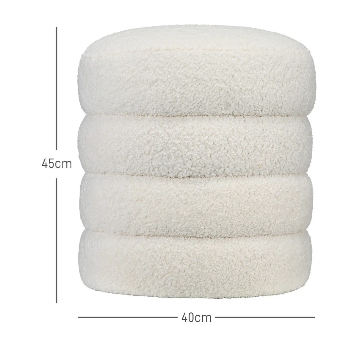 Suteikite savo kambariui elegancijos su HOMCOM kėdute! Ši stilinga apvali taburetė pasižymi paprastu dizainu ir švariomis linijomis. Dėl didelio paminkštinimo ir minkšto, odai nekenksmingo audinio dangos jis užtikrina aukštą komforto lygį. Universalus, kaip atrama kojoms ar sėdynei, jo tvirtas plieninis rėmas su grindų apsaugai garantuoja, kad jūsų grindys išliks nesubraižytos. Idealiai tinka atsisėsti arba iškelti kojas tarp jų.