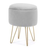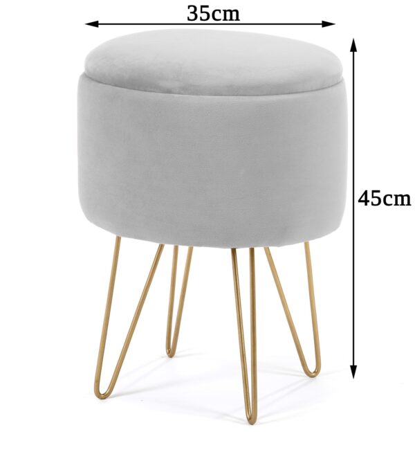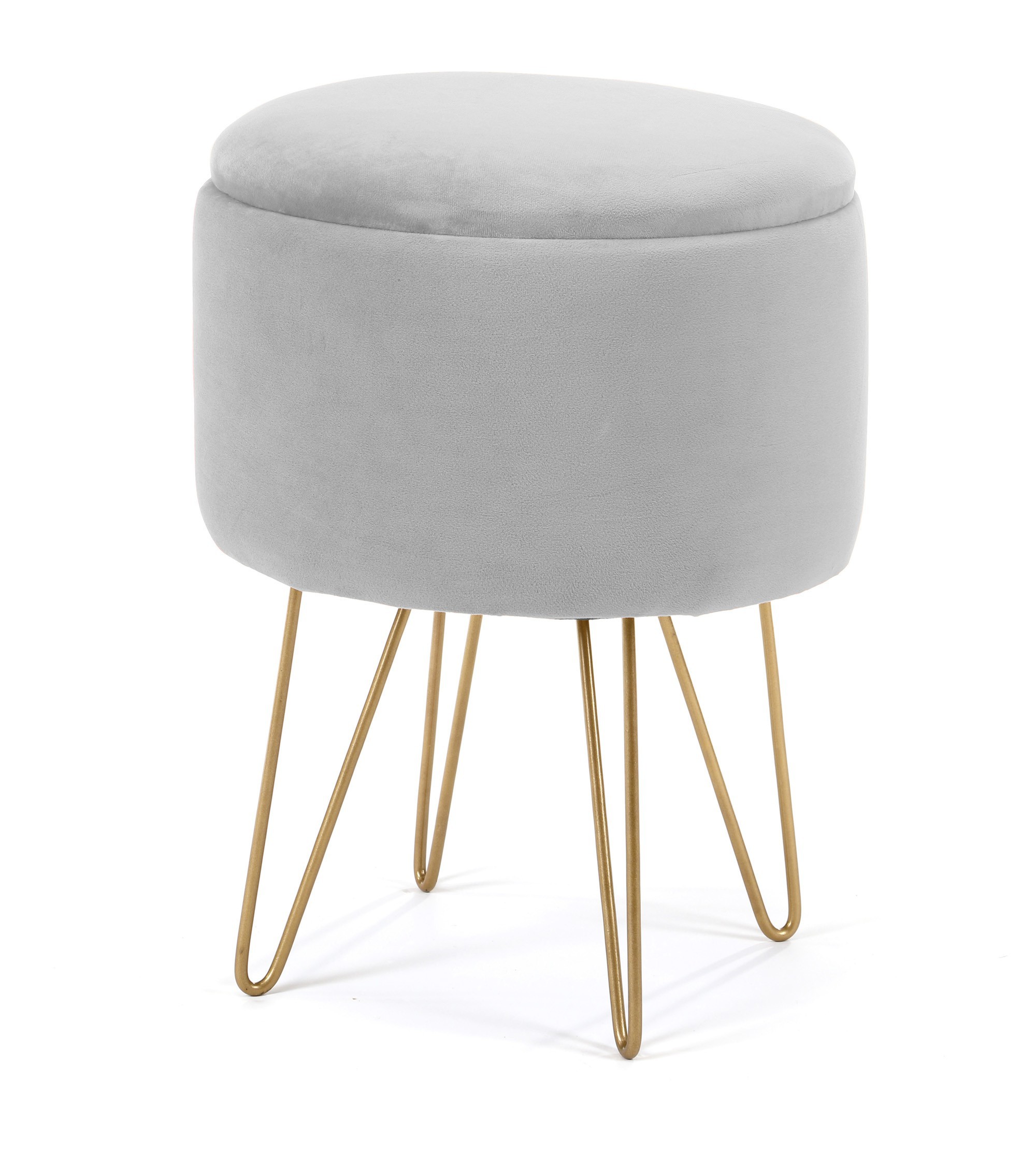 Kėdė arba pufas puikiai papildys svetainę ar miegamąjį. Būtent jo dėka pavargusios kojos gali pailsėti po visos dienos vaikščiojimo, o kai pufas pagamintas iš minkšto veliūro, tai tik sustiprina malonius poilsio pojūčius. Moderni išvaizda – tai aksesuarai, mūsų pufelyje naudojome metalines kojeles, nudažytas aukso spalva, kuri šiemet tokia madinga. Atidaromas dangtelis suteikia prieigą prie konteinerio, kuriame galime sudėti kasdieniniam naudojimui nereikalingus daiktus.