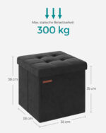 Pufas su daiktadėže 38x38x38 cm, juodos spalvos