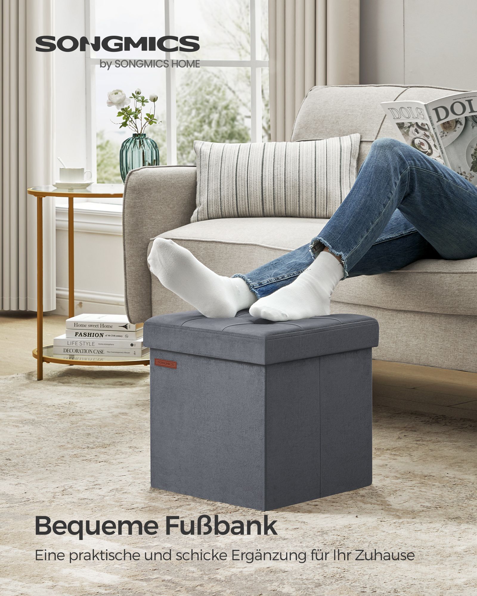 Šis pufas ne tik suteikia papildomą sėdimą vietą, bet ir leidžia patogiai laikyti įvairius daiktus, tokius kaip žurnalai, žaislai ar pledai. Jo tvirta konstrukcija užtikrina ilgaamžiškumą, o minkštas aksominis paviršius suteikia komforto ir prabangos pojūtį.