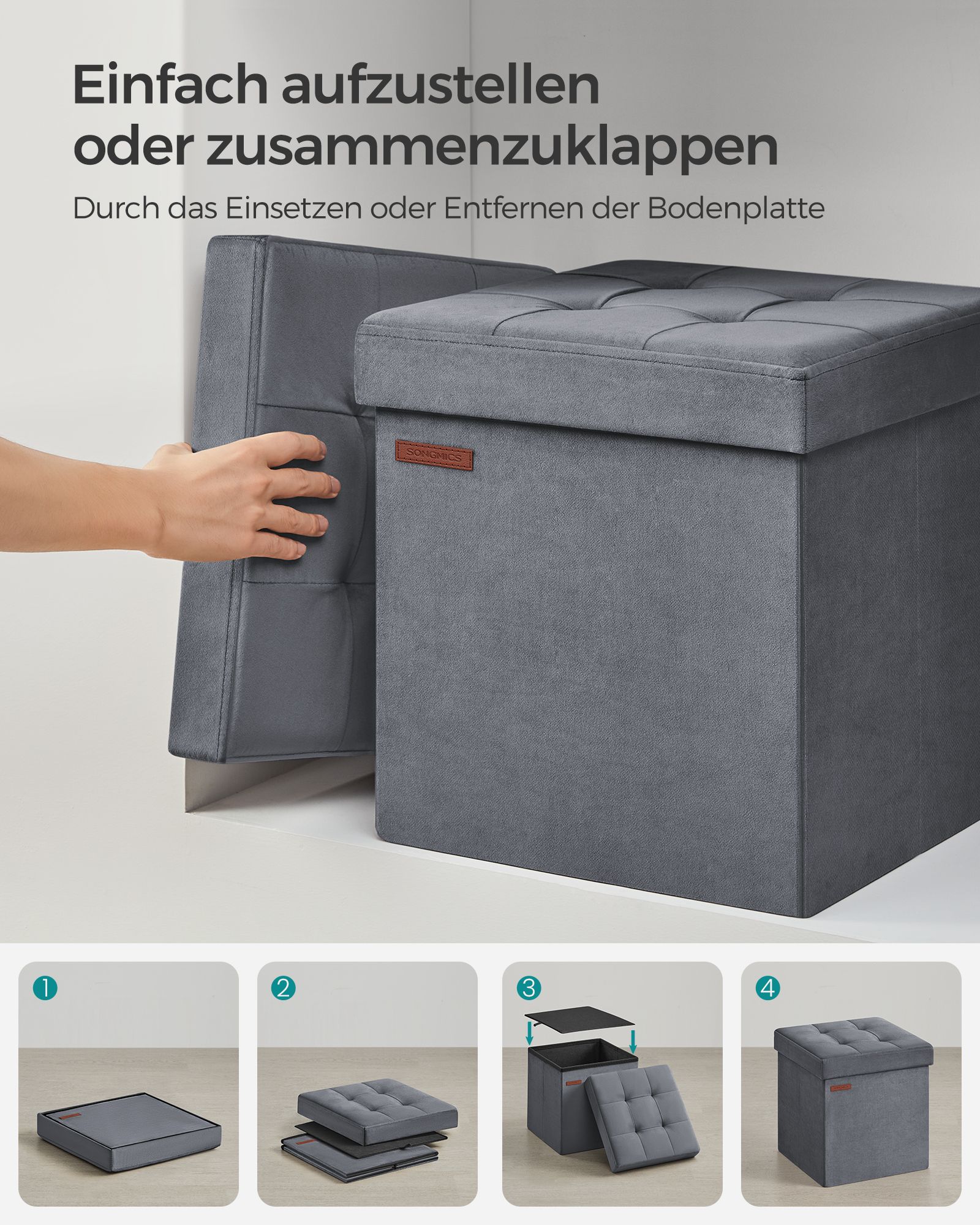 Pufas su daiktadėže 38x38x38 cm, tamsiai pilkos spalvos