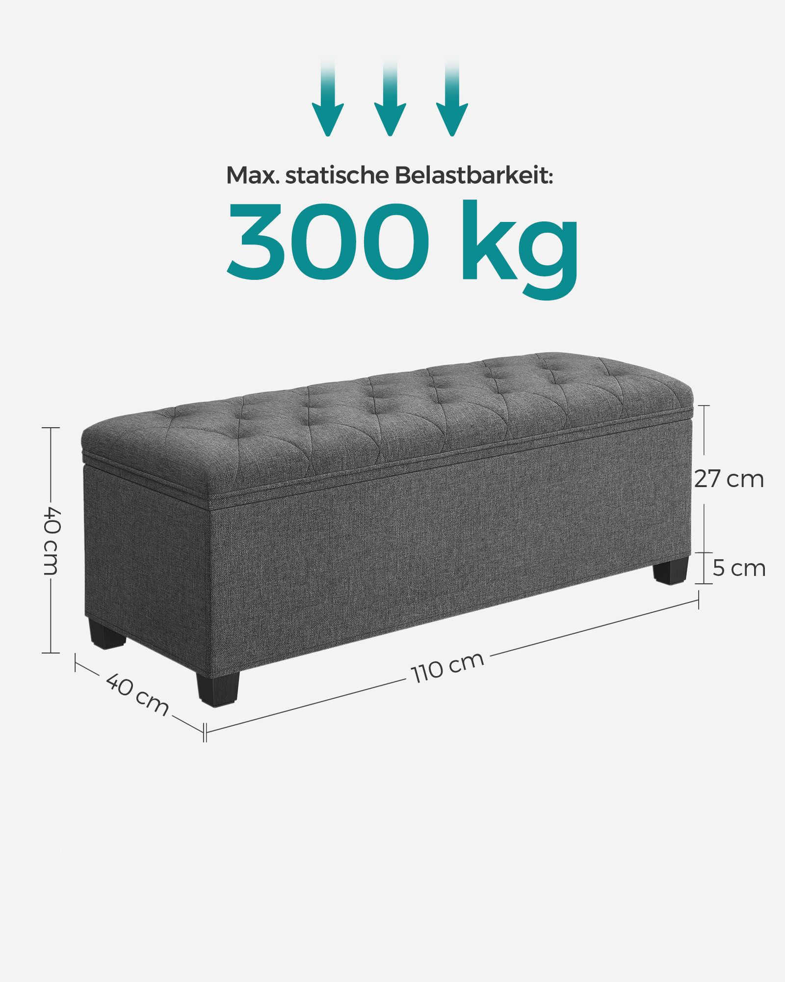 Pufas su daiktadėže 40x110x40cm, tamsiai pilkos spalvos
