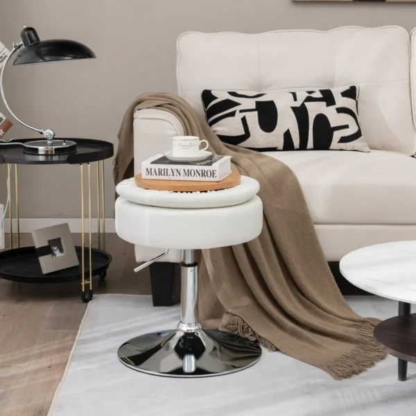 - Pufas su daiktadėže leidžia patogiai laikyti kosmetiką, žurnalus ar kitas smulkmenas.