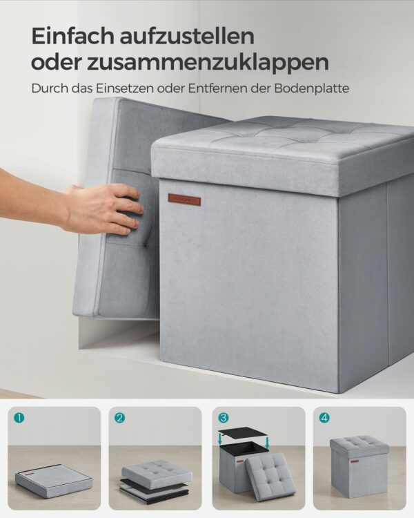 Šis pufas yra ne tik estetiškai patrauklus, bet ir itin funkcionalus. Jo tvirta konstrukcija užtikrina ilgaamžiškumą, o minkštas aksominis paviršius suteikia komfortą. Su 43 litrų talpa, jis puikiai tiks laikyti žurnalus, žaislus ar kitus smulkius daiktus, kuriuos norite turėti po ranka, bet paslėpti nuo akių.