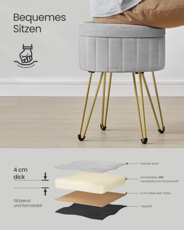 Pufas su daiktų laikymo vieta 39×44,4 cm – Pilkos/Auksinės Spalvos