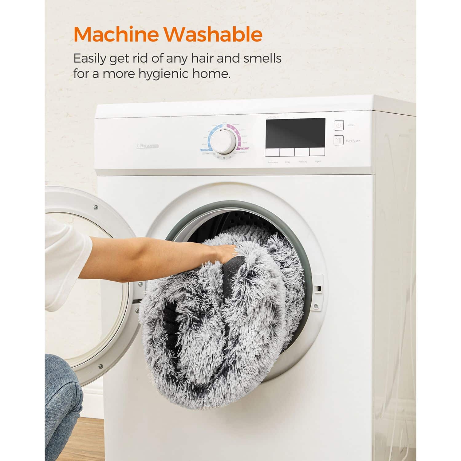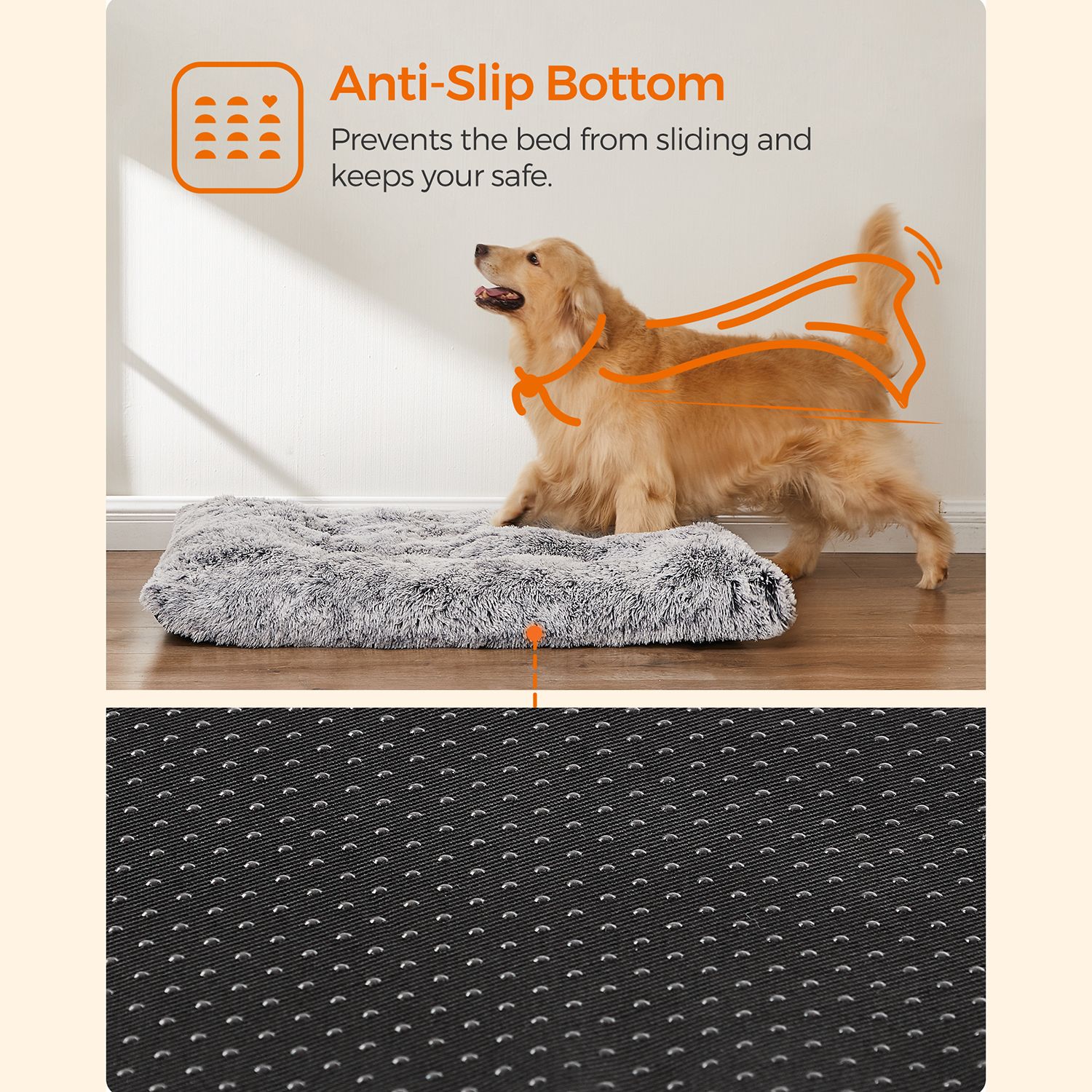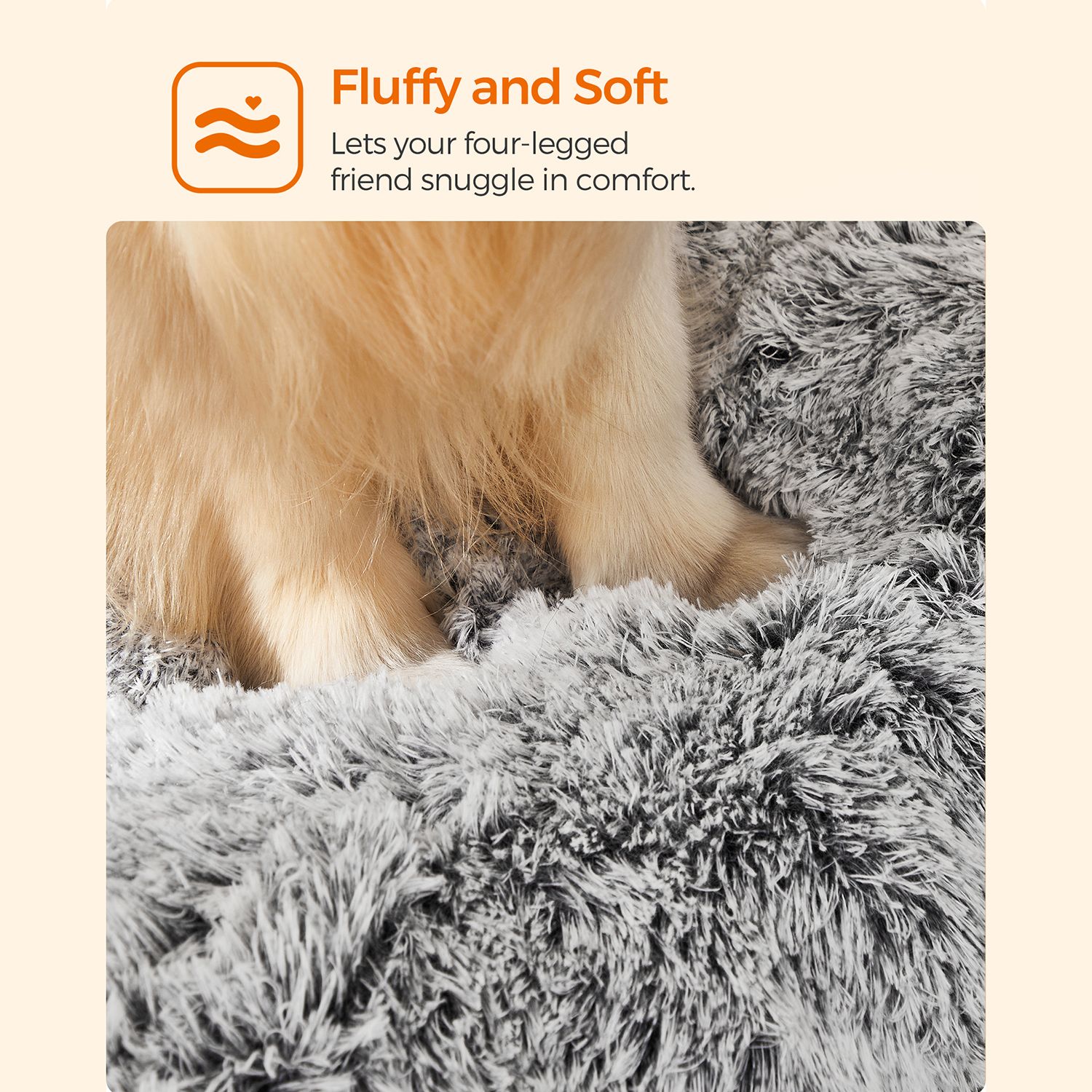 Šis pūkuotas šuns guolis yra puikus pasirinkimas jūsų keturkojui draugui. Jis yra šviesiai pilkos spalvos, pagamintas iš aukštos kokybės PV pliušo, PP užpildo ir audinio su guminiais gumbeliais, užtikrinančiais patogumą ir ilgaamžiškumą.