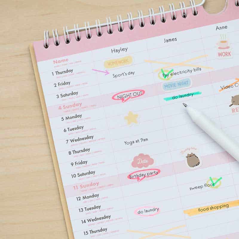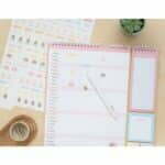 Sieninis kalendorius 2022/2023 metams nuo 2022 m. rugsėjo iki 2023 m. gruodžio mėn. su vieta užrašams, išdėstytiems stulpeliais. Rinkinyje yra bloknotas, trys lipnūs lapeliai, 1 lipduko lapas ir 1 rašiklis. Vielos surišimas su pakabu. Kalba: anglų, ispanų, prancūzų, italų ir vokiečių. Matmenys: 34 x 29,5 cm.
