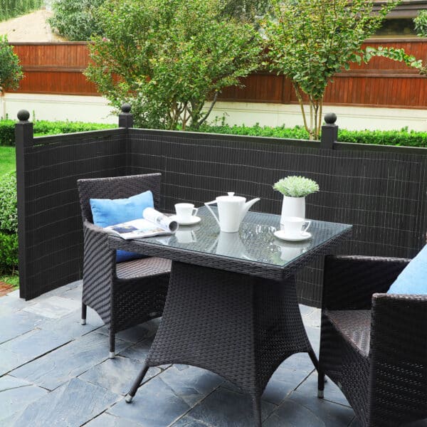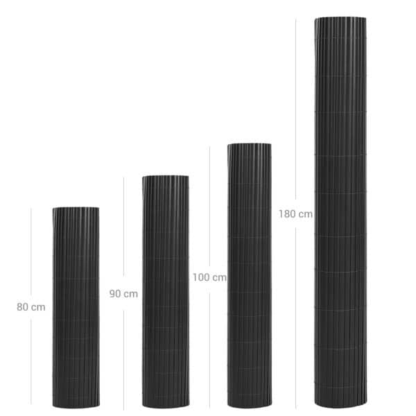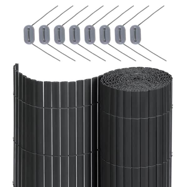 Apsauga ir dekoratyvumas: Su šiuo rėmeliu galite sukurti ramybės oazę. Pagaminta iš PVC, efektyviai blokuoja saulės šviesą ir apsaugo jūsų privatumą. Be to, šis kilimėlis puikiai pridengia jūsų šiek tiek pasenusią sodo tvorą.
