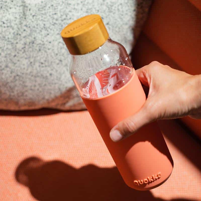 Quokka Flow - stiklinė, suapvalinta gertuvė su silikoniniu dangteliu 660ml (Inner Pink Botanical)