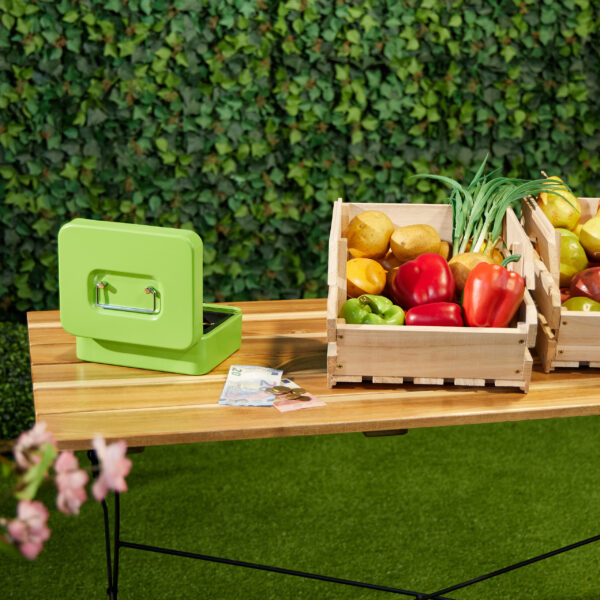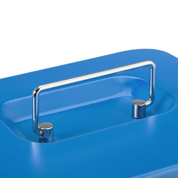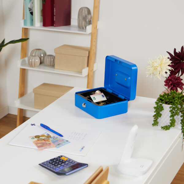 Ieškote patikimo sprendimo grynųjų pinigų saugojimui? Mūsų rakinama kasos dėžutė, elegantiškos mėlynos spalvos, yra puikus pasirinkimas tiek namų naudojimui, tiek įvairiems renginiams, tokiems kaip sendaikčių turgūs ar mugės.
