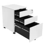 Spyna su 2 rakteliais užrakina visus 3 stalčius vienu metu, todėl visi jūsų dokumentai bus saugiai susidėti spintelės konteineryje. 60 cm aukščio mobilus konteineris taip pat telpa po standartiniais stalais ir sutaupo dar daugiau vietos.