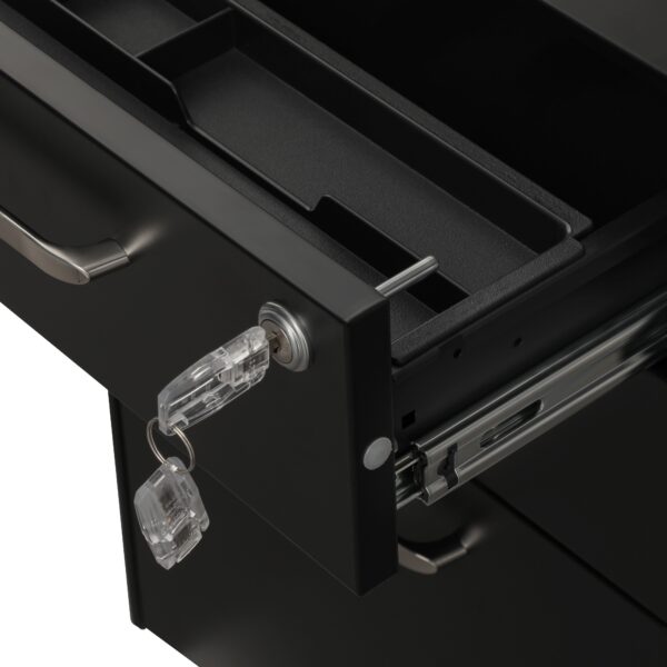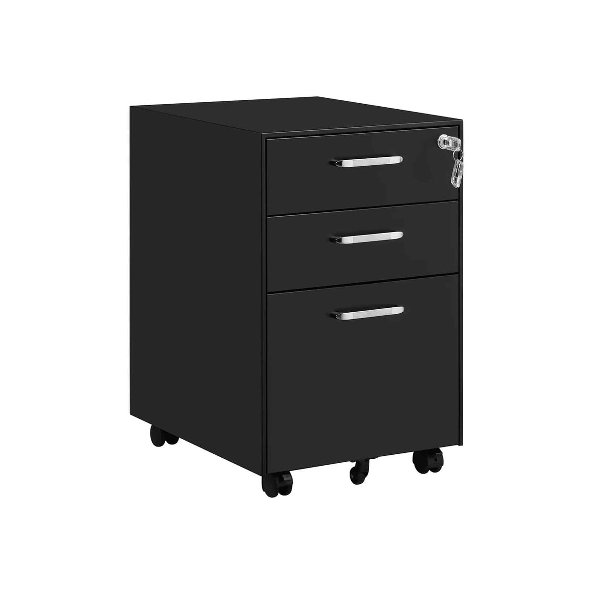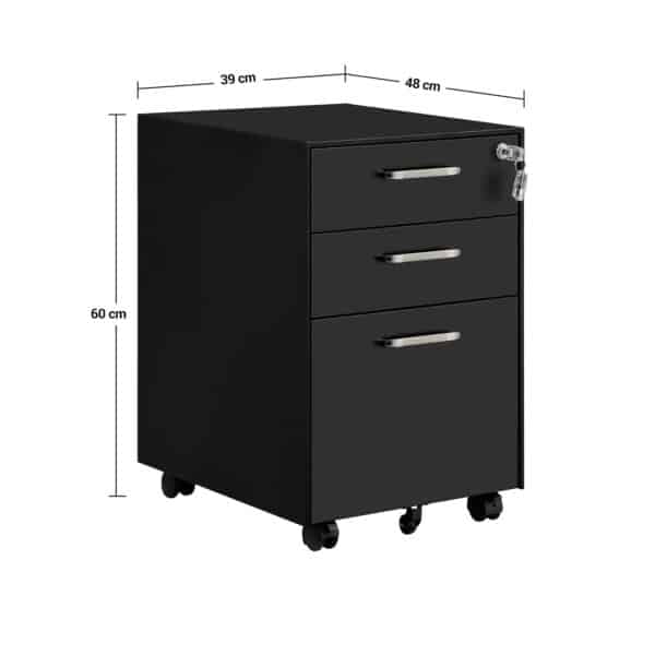 Supaprastinkite savo biuro darbą su šia SONGMICS rakinama spinta su stalčiais, juodos spalvos. Ar dokumentų krūvos dengia jūsų stalą? Laikykite juos tvarkingus šiame mobiliajame konteineryje! 3 stalčiai, pakabinamas failas ir išimamas skyrius biuro reikmenims užtikrina, kad visi jūsų biuro daiktai bus laikomi aiškiai ir lengvai randami.