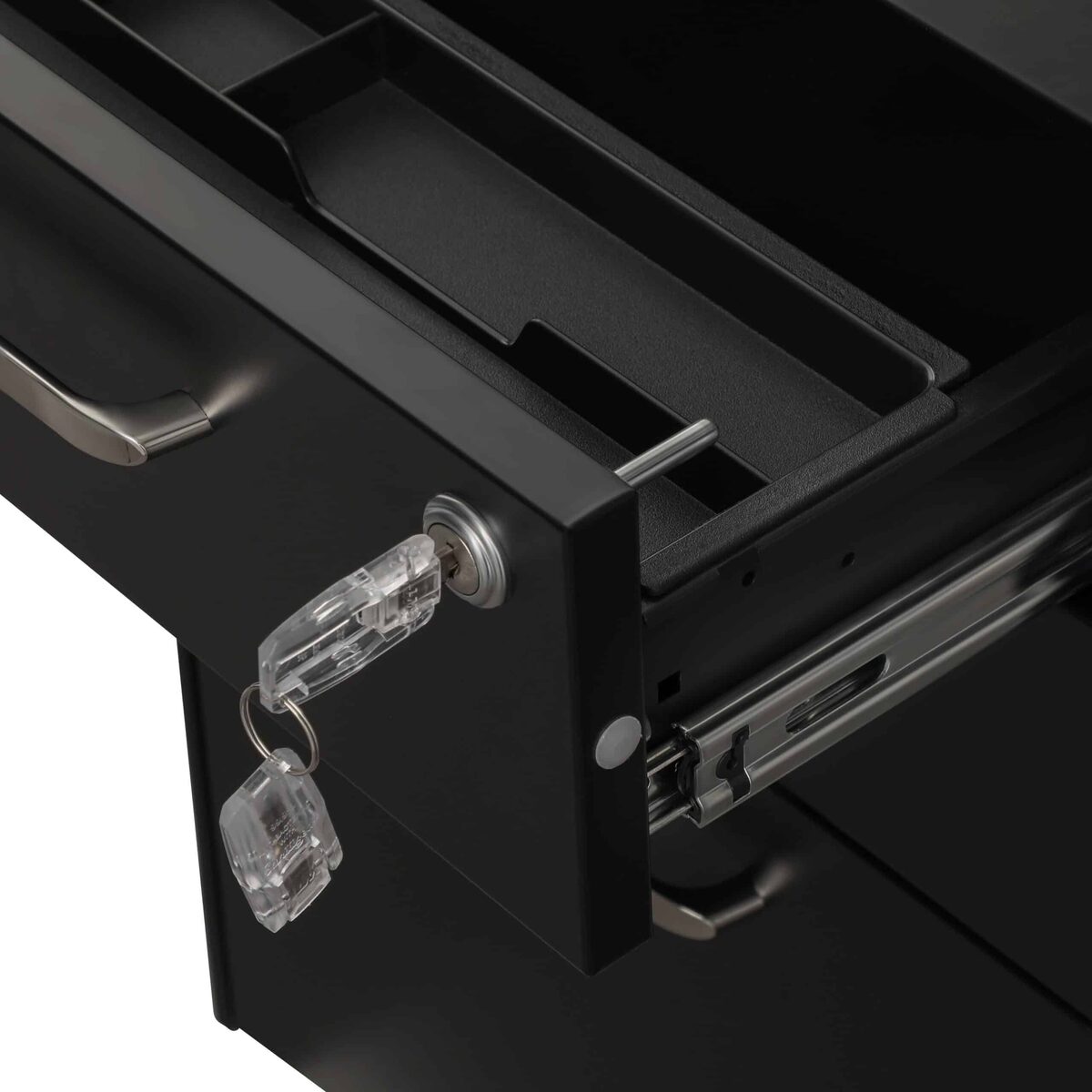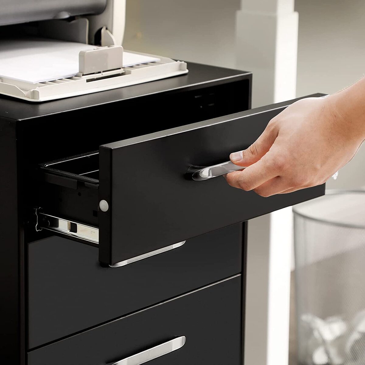 Stabilus, praktiškas ir lankstus: nesijaudinkite dėl šios kartotekos spintelės stabilumo! Kiekvienas metalinis stalčius gali būti apkrautas iki 15 kg ir yra aprūpintas aukščiausios kokybės pilnai ištraukiamais bėgeliais, kurie leidžia sklandžiai ištraukti ir įstumti. Ar norėtumėte perkelti konteinerį į kitą kambarį? 5 spintelės ratukai, iš kurių 2 yra užrakinami, atlieka darbą už jus. Nesvarbu, ar dirbate biure, ar namuose, ši dokumentų spinta leidžia atsisveikinti su chaosu prie stalo ir padidinti produktyvumą.
