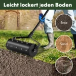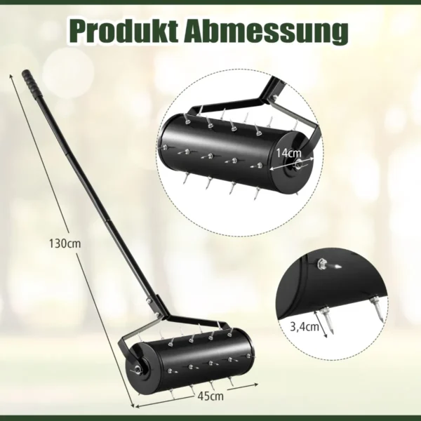 Rankinis vejos aeratorius 45x130cm, juodos spalvos, skirtas vejai aeruoti ir vėdinti. Šis vejos priežiūros įrankis pagerina oro, vandens ir maistinių medžiagų cirkuliaciją dirvoje, skatindamas žoles greitesnį augimą ir geresnę šaknų vystymąsi.