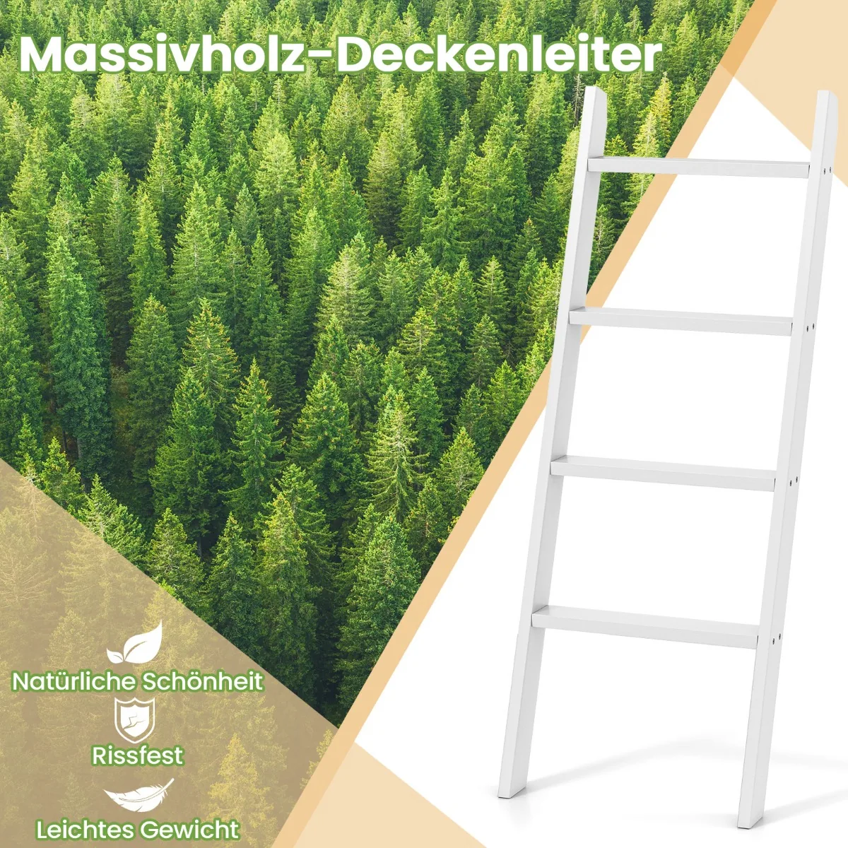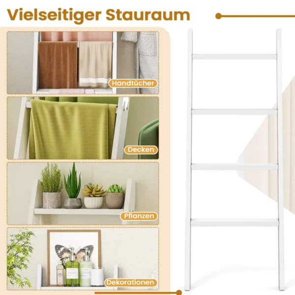 - 4 pakopų kopėčios, skirtos laikyti rankšluosčius, antklodes ir kitus namų apyvokos daiktus.