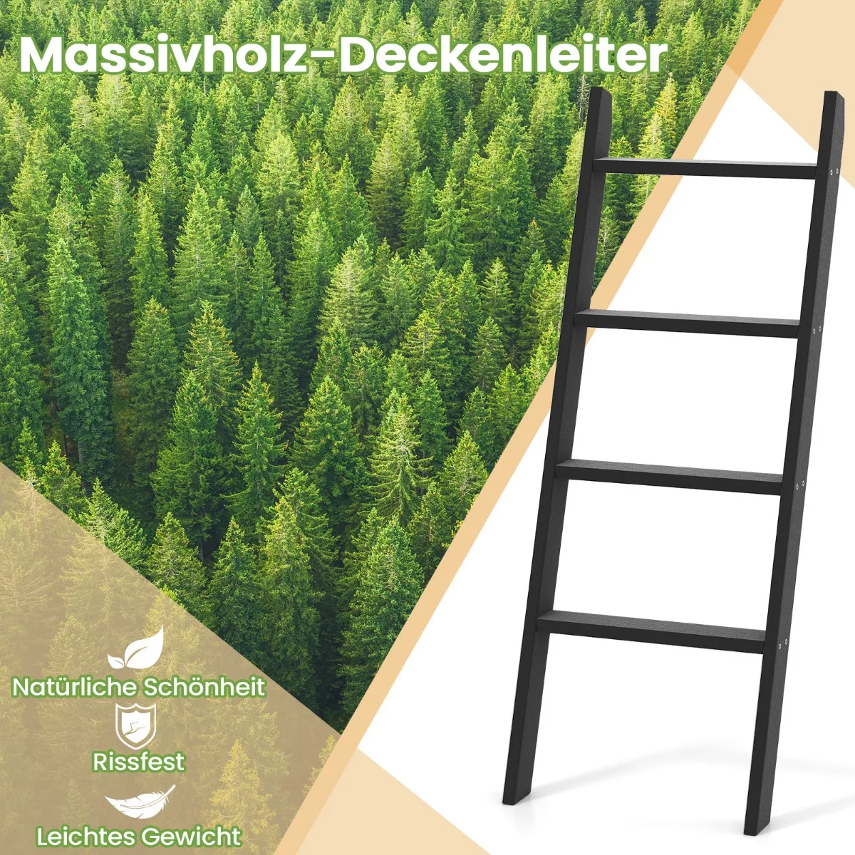 • Keturių pakopų kopėčių lentyna sujungia funkcionalumą ir erdvės taupymą.