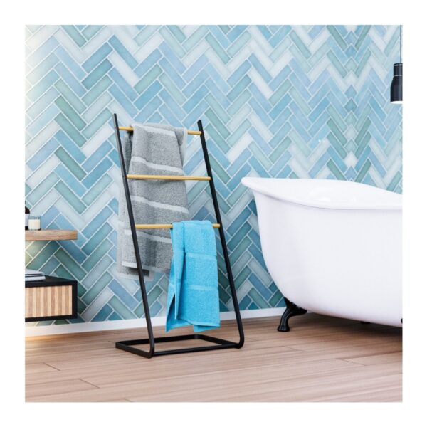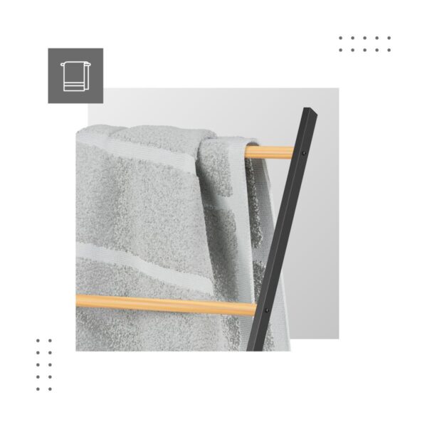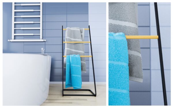 • Metalinis-medinis vonios kambario laikiklis rankšluosčiams ir priedams.