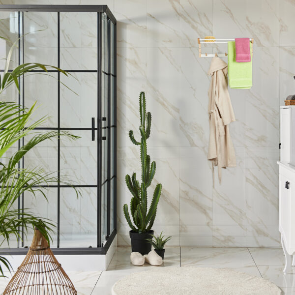 • Papildoma vieta: 5 kabliukai suteikia galimybę patogiai pakabinti chalatus, drabužius ar kitus vonios reikmenis.