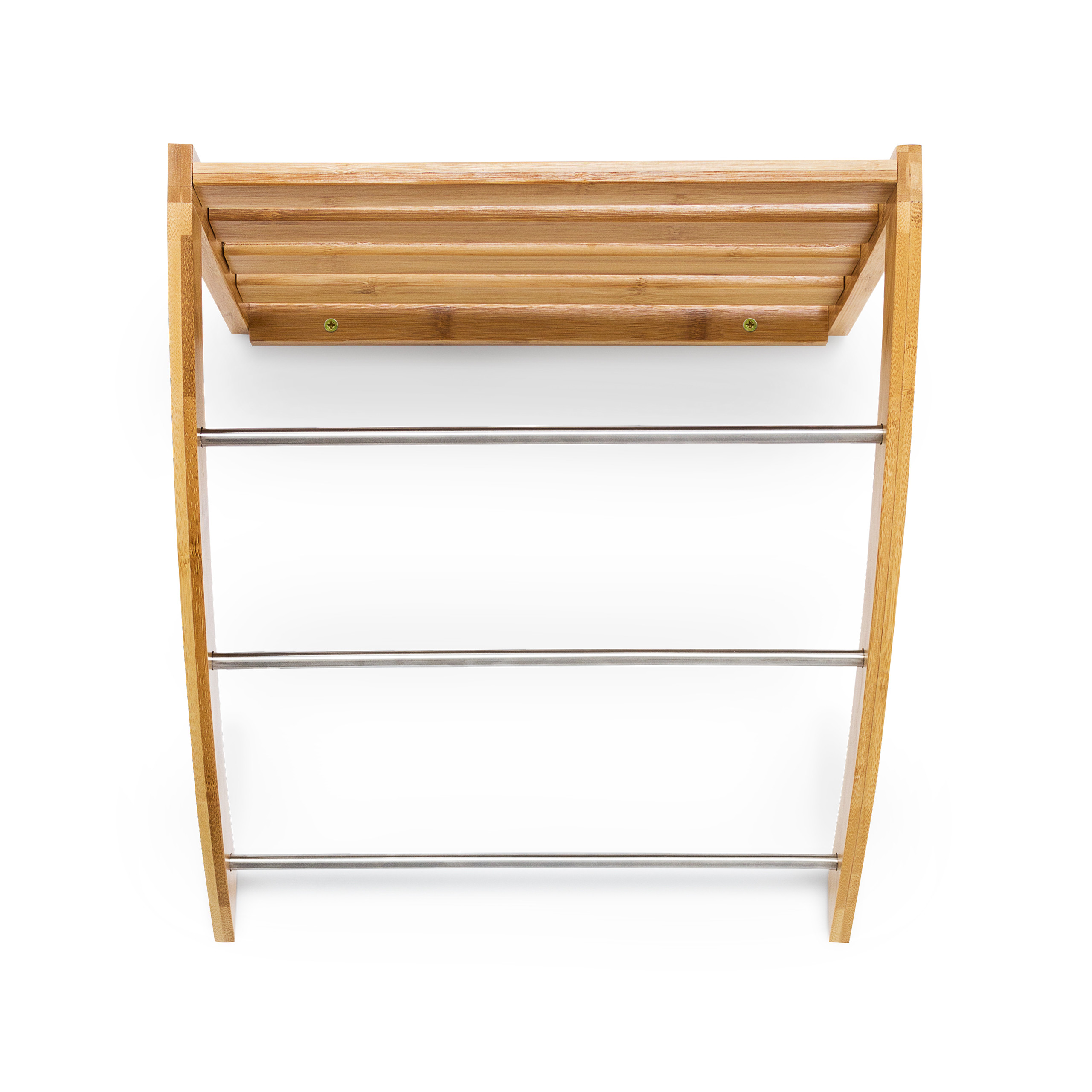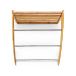- Natūralus ir modernus dizainas: Bambuko grūdeliai ir matinio metalo derinys suteikia elegancijos ir gali būti naudojamas ne tik vonios kambaryje, bet ir kaip stilinga paltų kabykla.