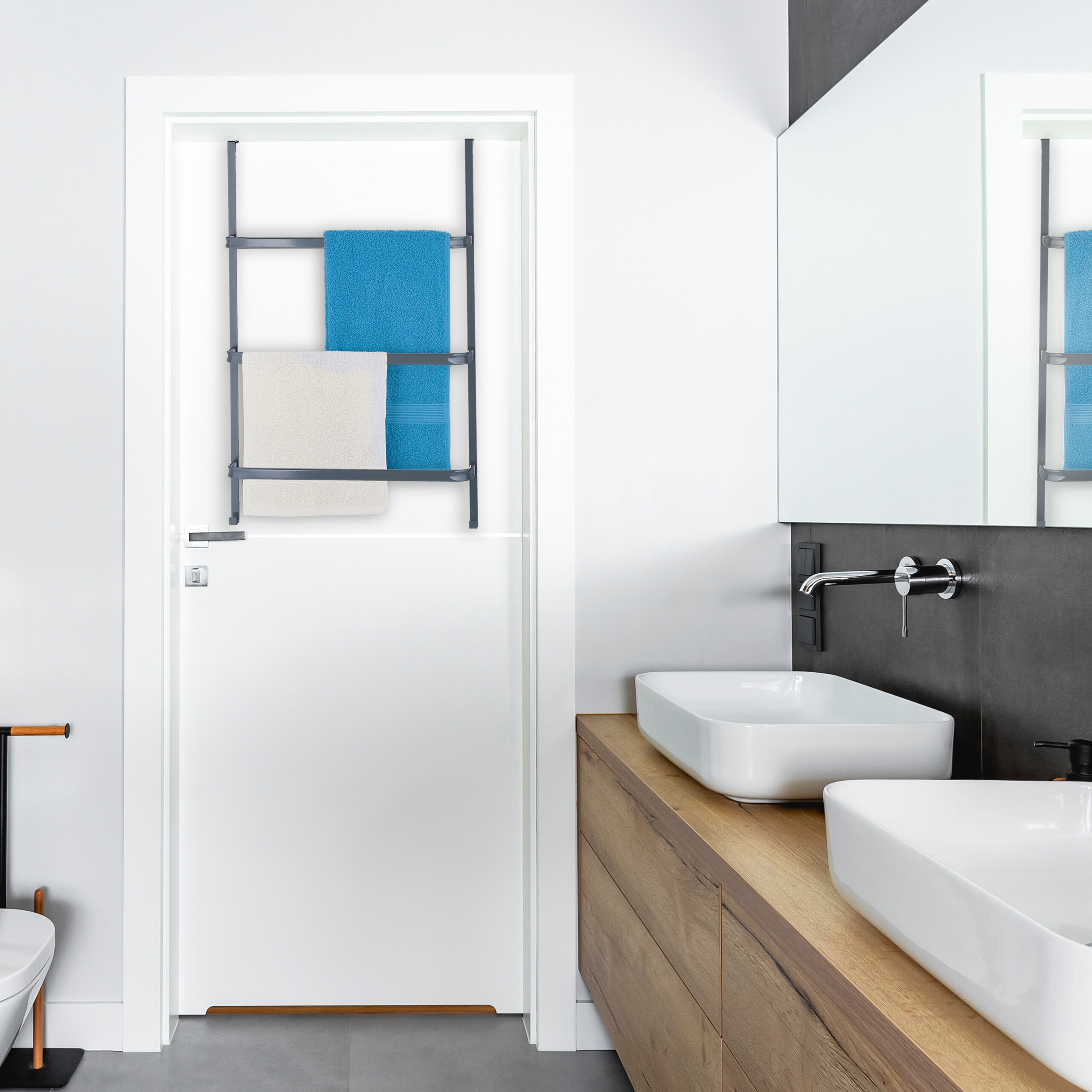 - Universalus pritaikymas: Tinka visoms standartinėms durims, todėl galite būti tikri, kad jis puikiai tiks jūsų vonios kambaryje.