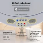 - Laikmačio funkcija su 20/40/60/90 minučių nustatymais ir trys temperatūros režimai (60°C, 70°C, 80°C).
