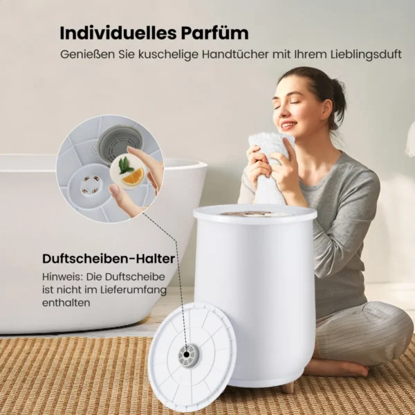 - Įmontuotas kvapiųjų diskų laikiklis, leidžiantis suteikti džiovintiems rankšluosčiams norimą aromatą (kvapų diskas nepridedamas).