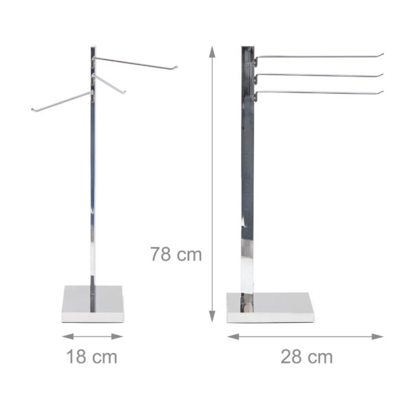 Pristatome elegantišką ir funkcionalų rankšluosčių stovą, kuris taps puikiu jūsų vonios kambario akcentu. Šis stovas ne tik suteikia pakankamai vietos jūsų rankšluosčiams, bet ir padeda išlaikyti tvarką bei stilių.