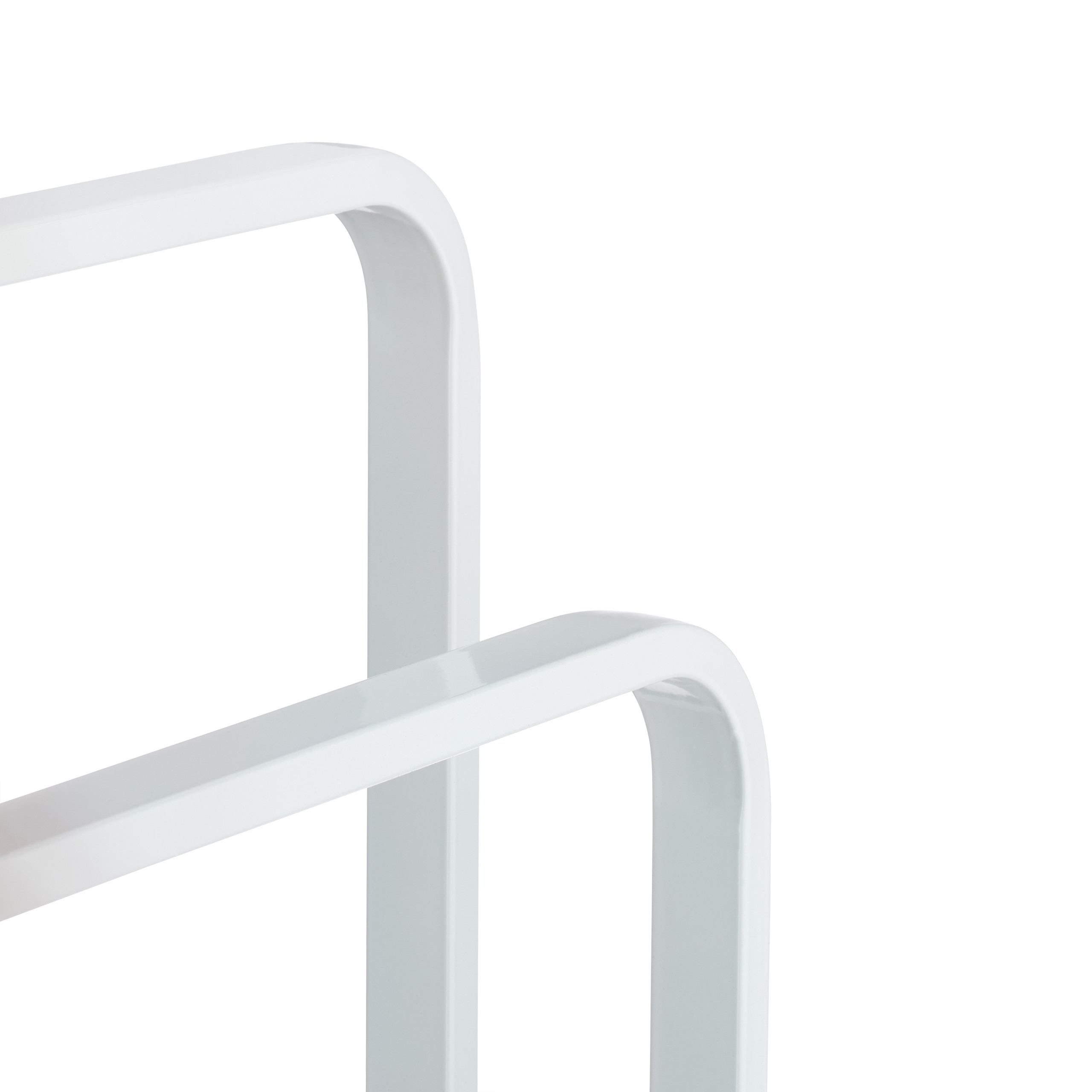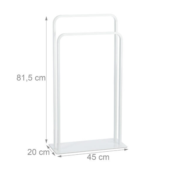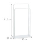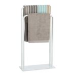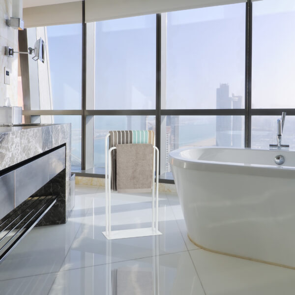 Pasirinkite šį baltos spalvos rankšluosčių stovą ir suteikite savo vonios kambariui naują, modernų įvaizdį, kartu išlaikydami tvarką ir patogumą.