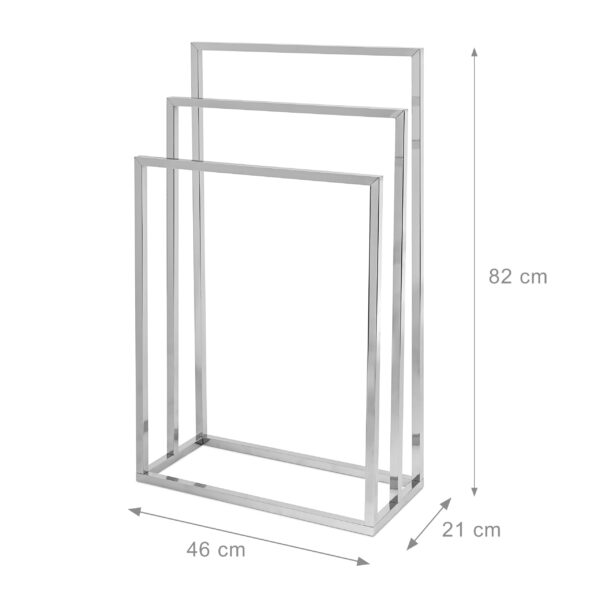 - Trijų strypų dizainas: Stovas turi tris didėjančio aukščio strypus, kurie suteikia pakankamai vietos jūsų vonios rankšluosčiams.